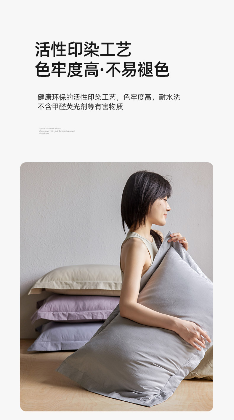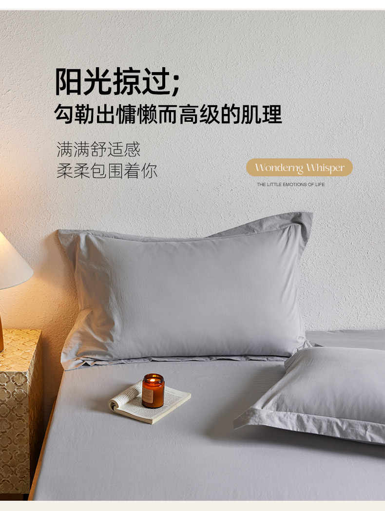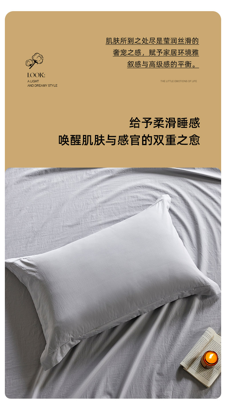 轩和家居 2025新款70S砂洗长绒棉枕套 松烟