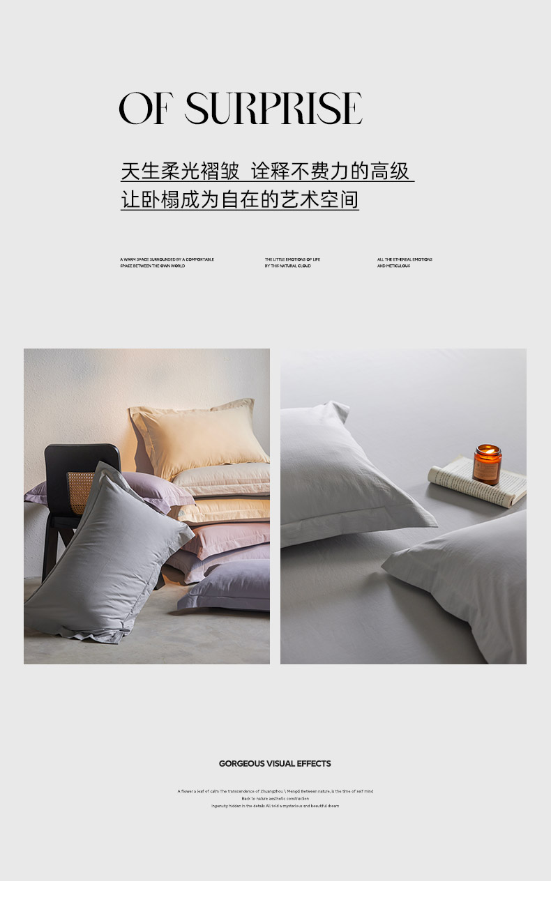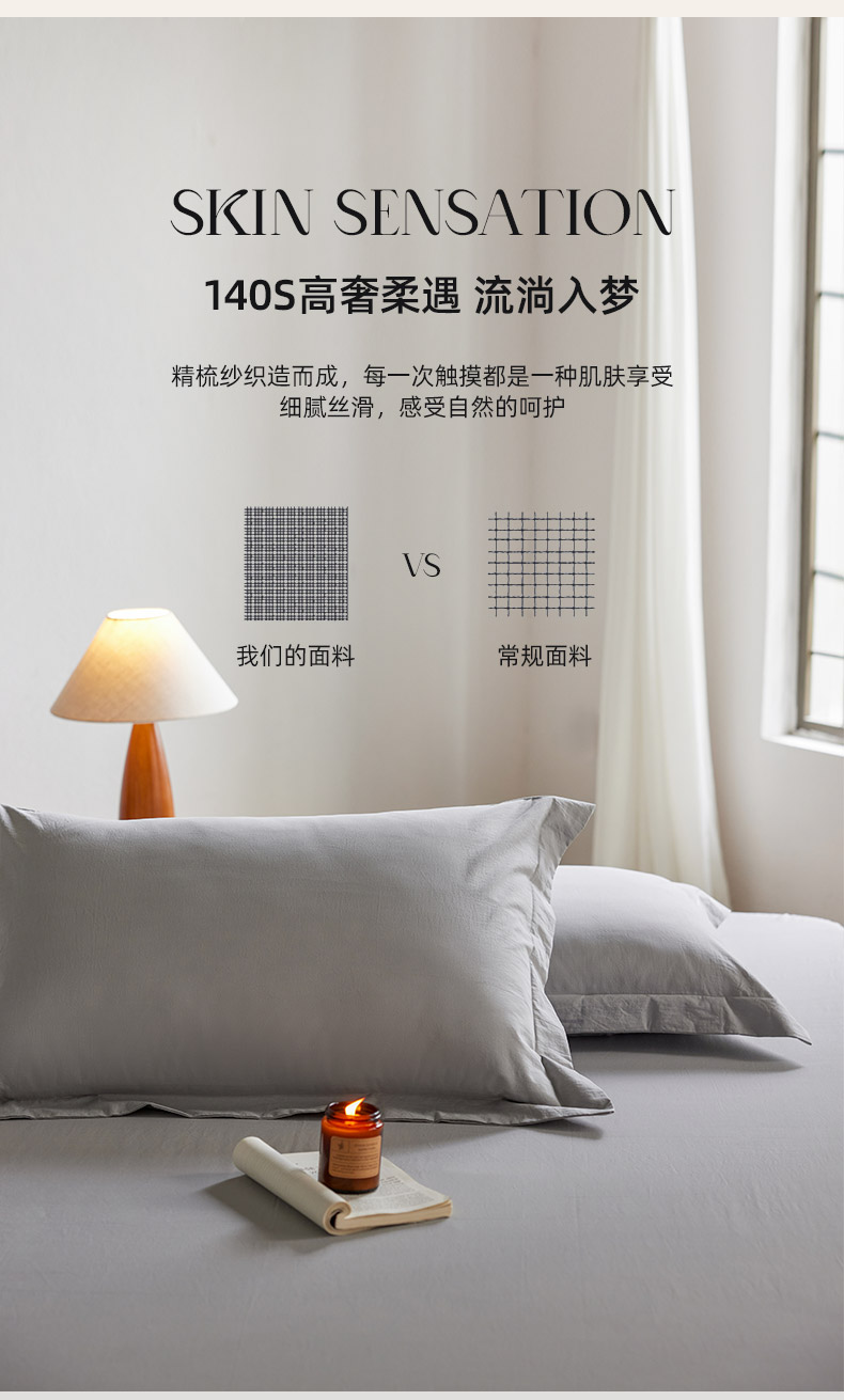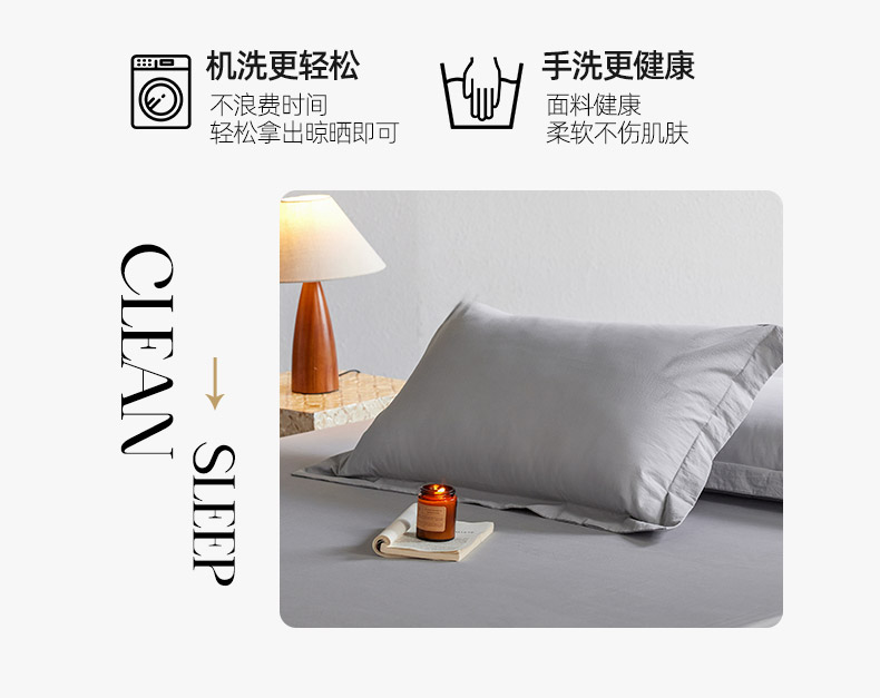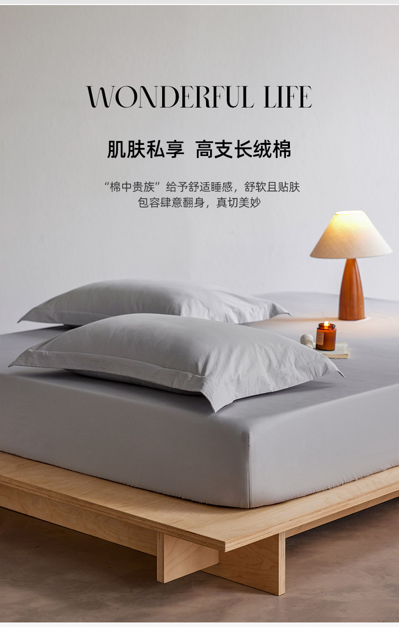 轩和家居 2025新款70S砂洗长绒棉枕套 松烟