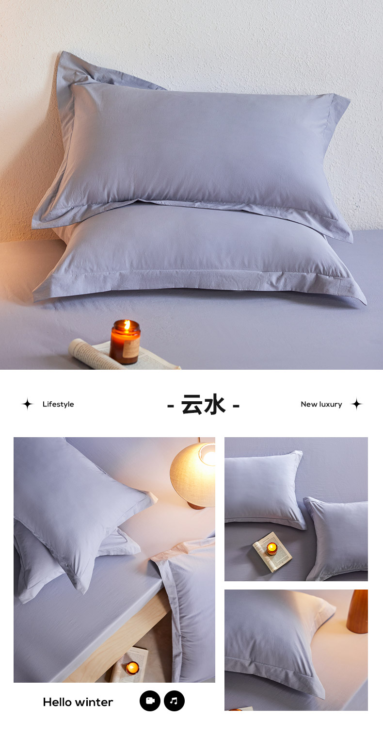 (总)轩和家居 2025新款70S砂洗长绒棉枕套,芦暖,松烟,烟凝,云水,组合