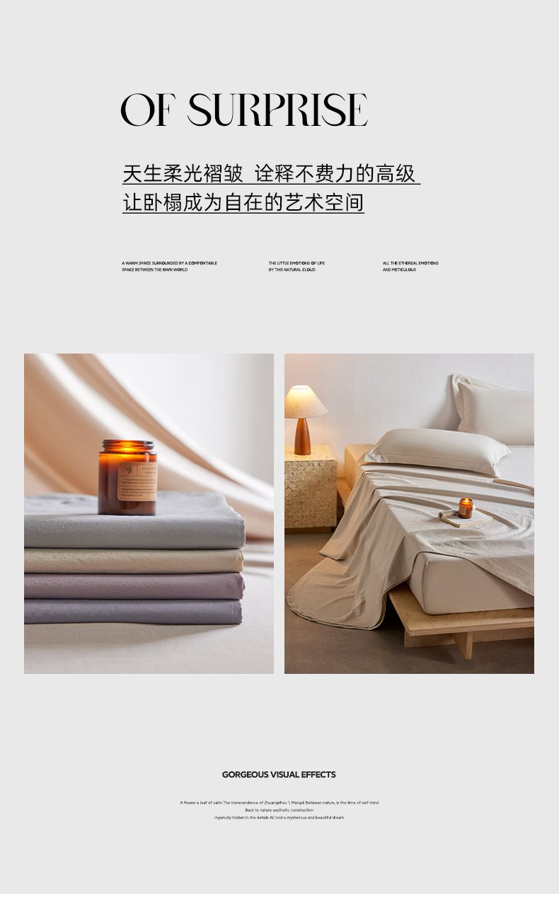 (总)轩和家居 2025新款全棉高支旧感砂洗长绒棉四件套,薄樱粉,淡黄色,暮烟灰,墨染灰,落栗棕,霁兰色,豆沙色,浅云白,青绿色,秋麦色,松石绿,天空蓝,雾海蓝,细雨灰