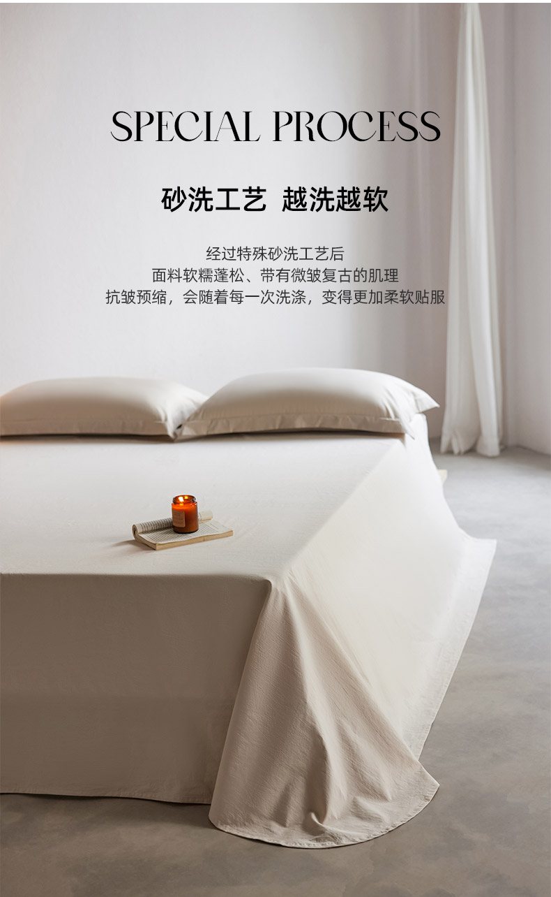 (总)轩和家居 2025新款全棉高支旧感砂洗长绒棉单床单,组合,霁兰色,暮烟灰,墨染灰,落栗棕,薄樱粉,豆沙色,淡黄色,浅云白,青绿色,秋麦色,松石绿,天空蓝,雾海蓝,细雨灰