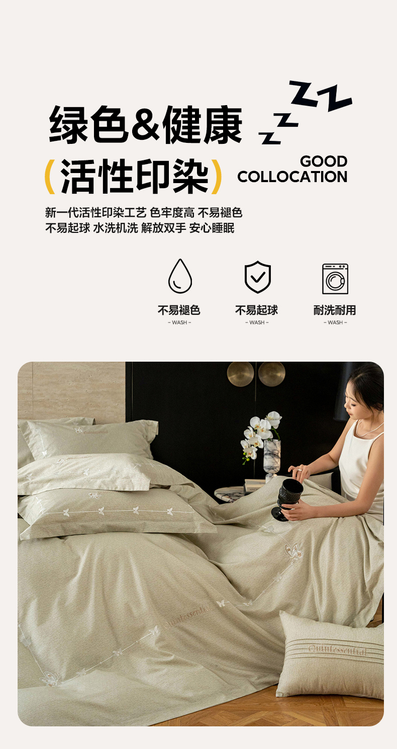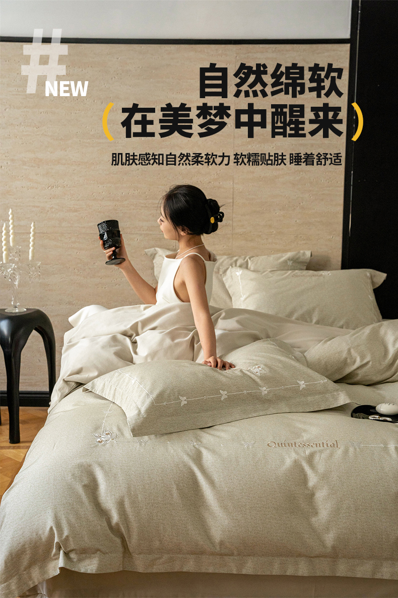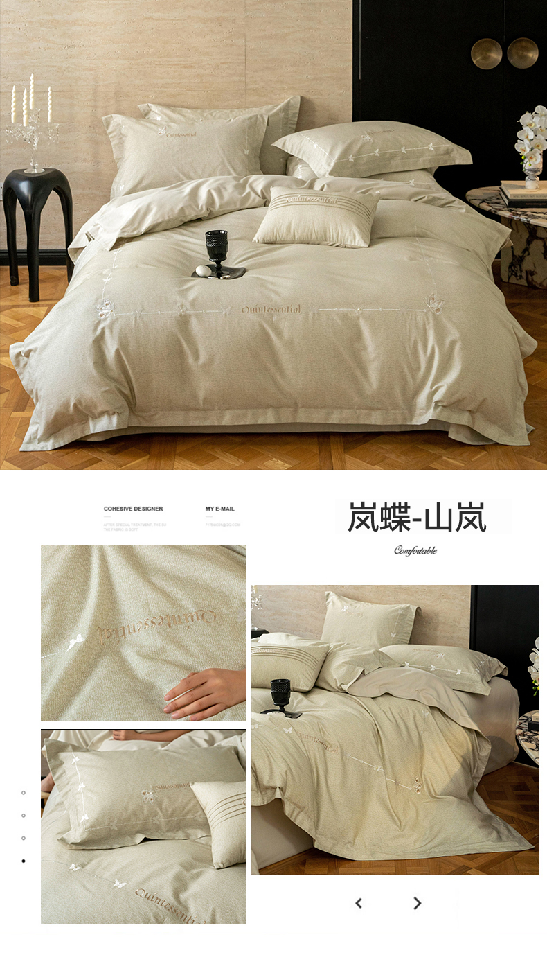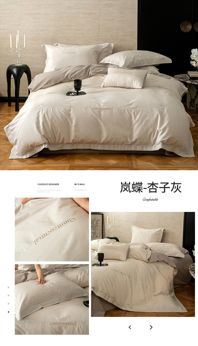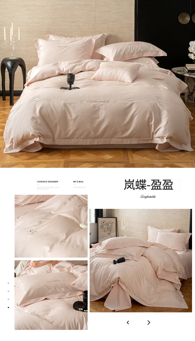 商品名称:(总)红番天家居馆 (控价)2025新款全棉云柔棉磨毛+磨毛肌理纹+工艺款四件套-岚蝶(每款供货价的基础上一切活动券后+100)