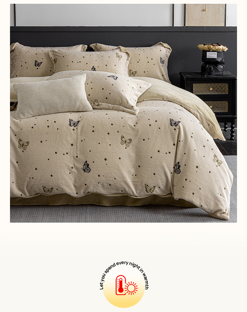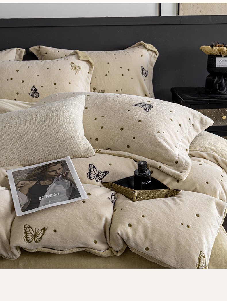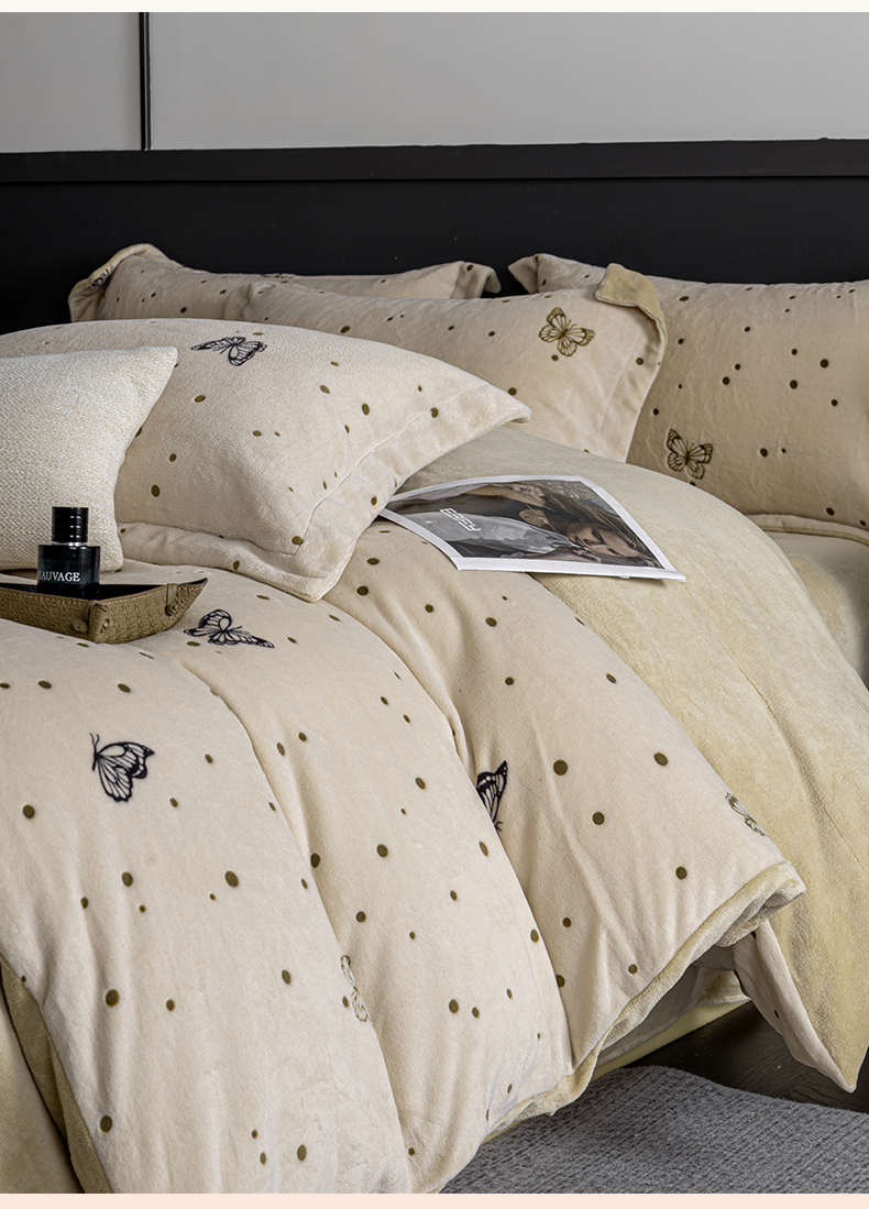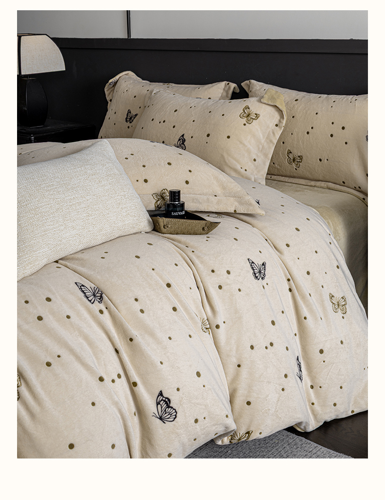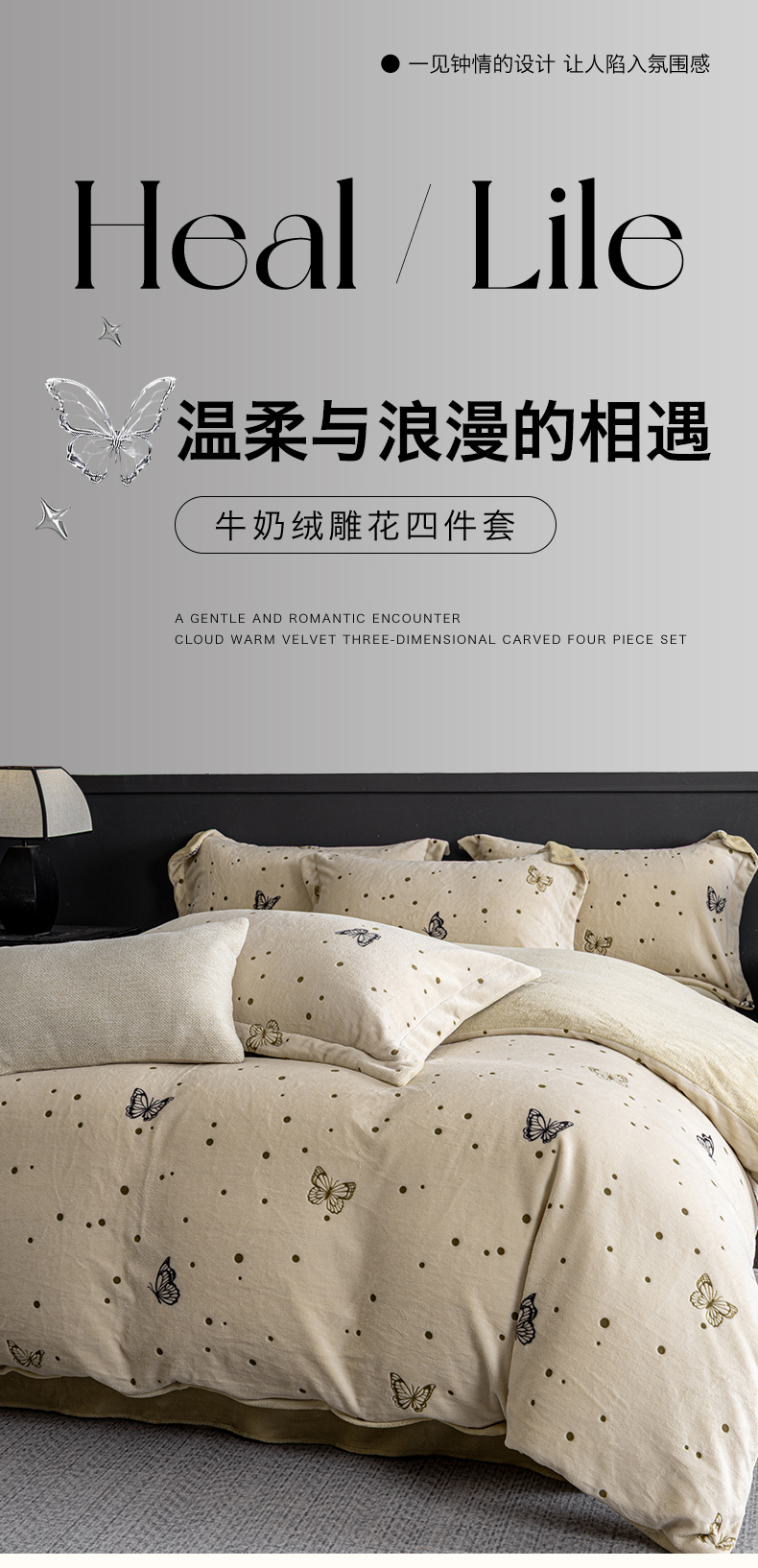 罗优家纺 2025新款牛奶绒雕花绒四件套 蝶光萦绕
