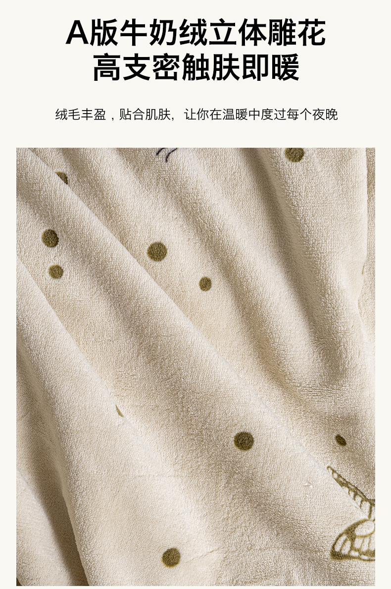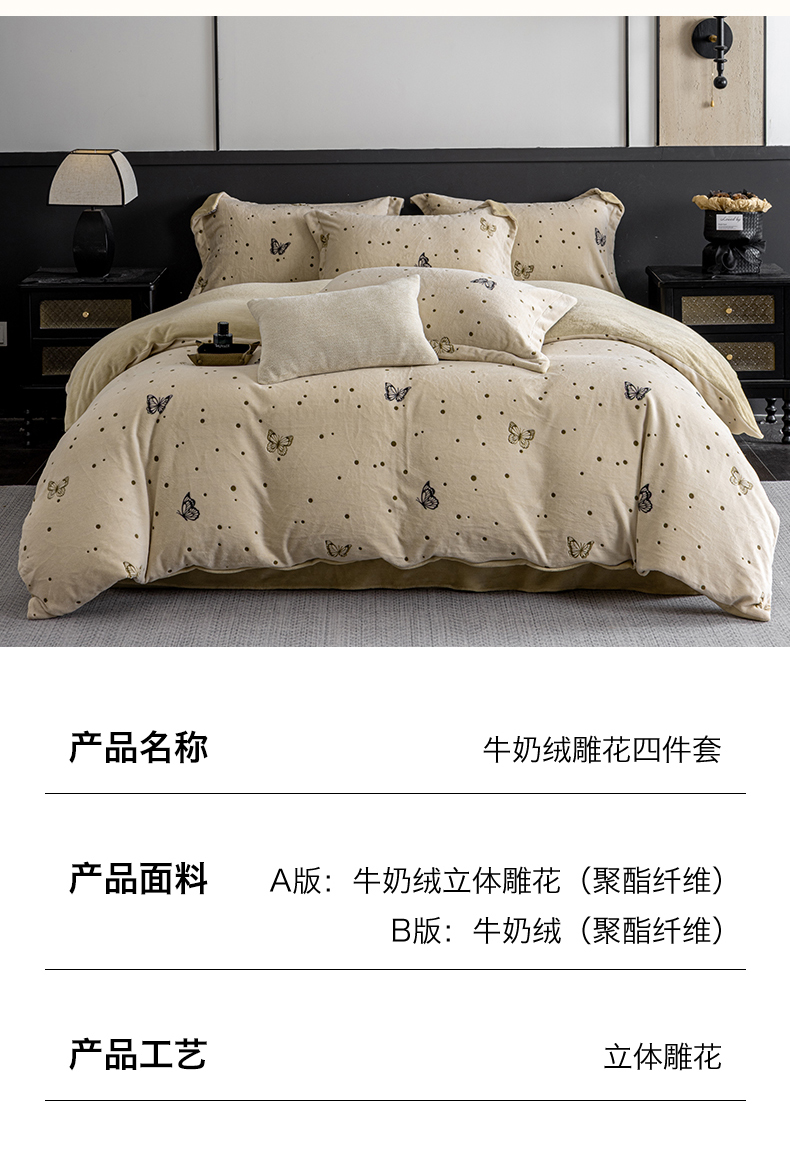 商品名称:罗优家纺 2025新款牛奶绒雕花绒四件套 蝶光萦绕