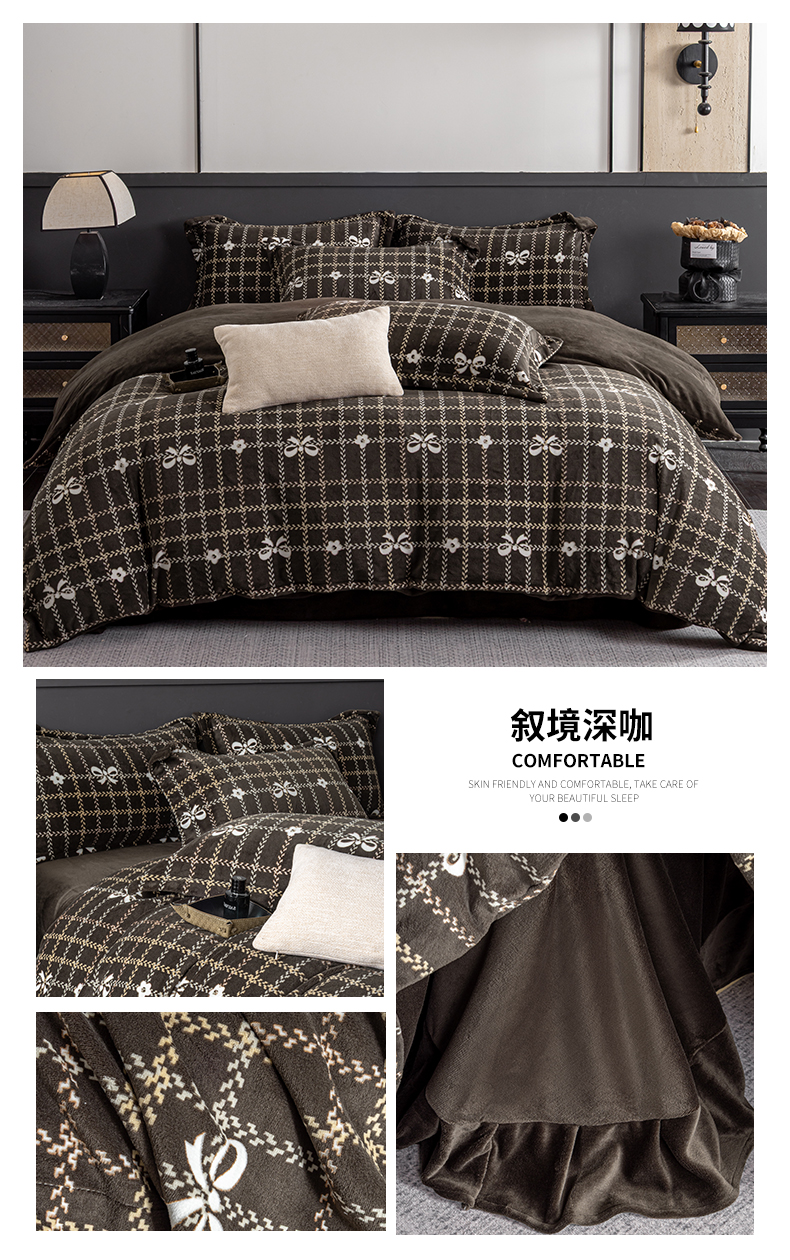 (总)罗优家纺 2025新款柔暖皱幔款暖绒四件套,浅粉,浅灰,浅蓝,浅杏