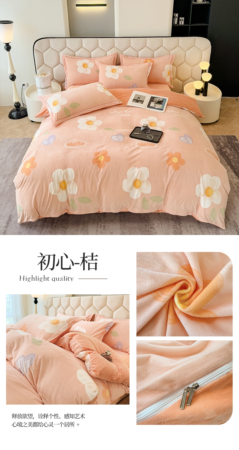 商品名称:喜四方 2025新款超细旦婴儿宝宝绒印花四件套 初心-桔