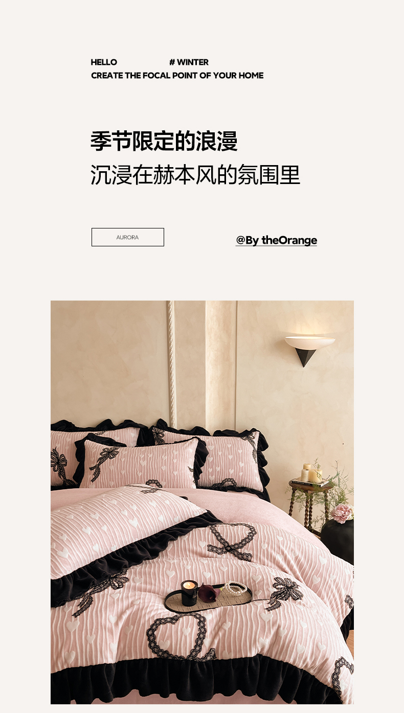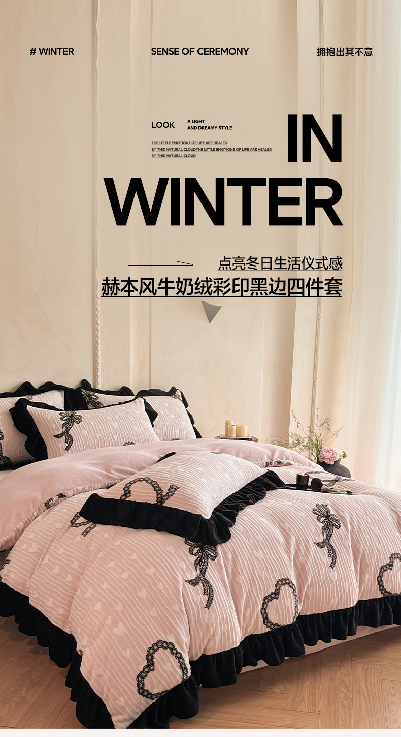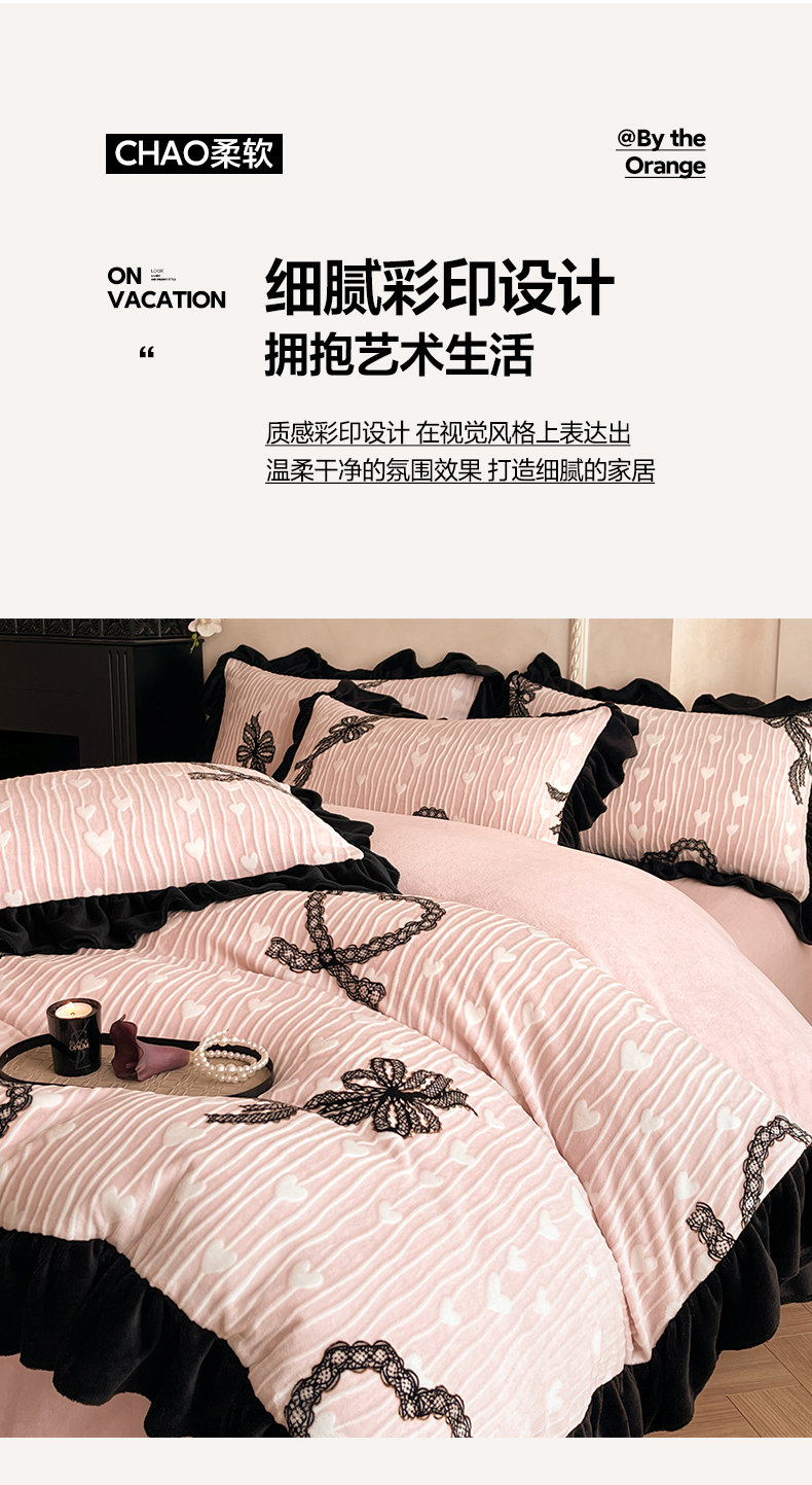 商品名称:(总)索飞特家纺 2025新款秋冬赫本风牛奶绒彩印黑边四件套