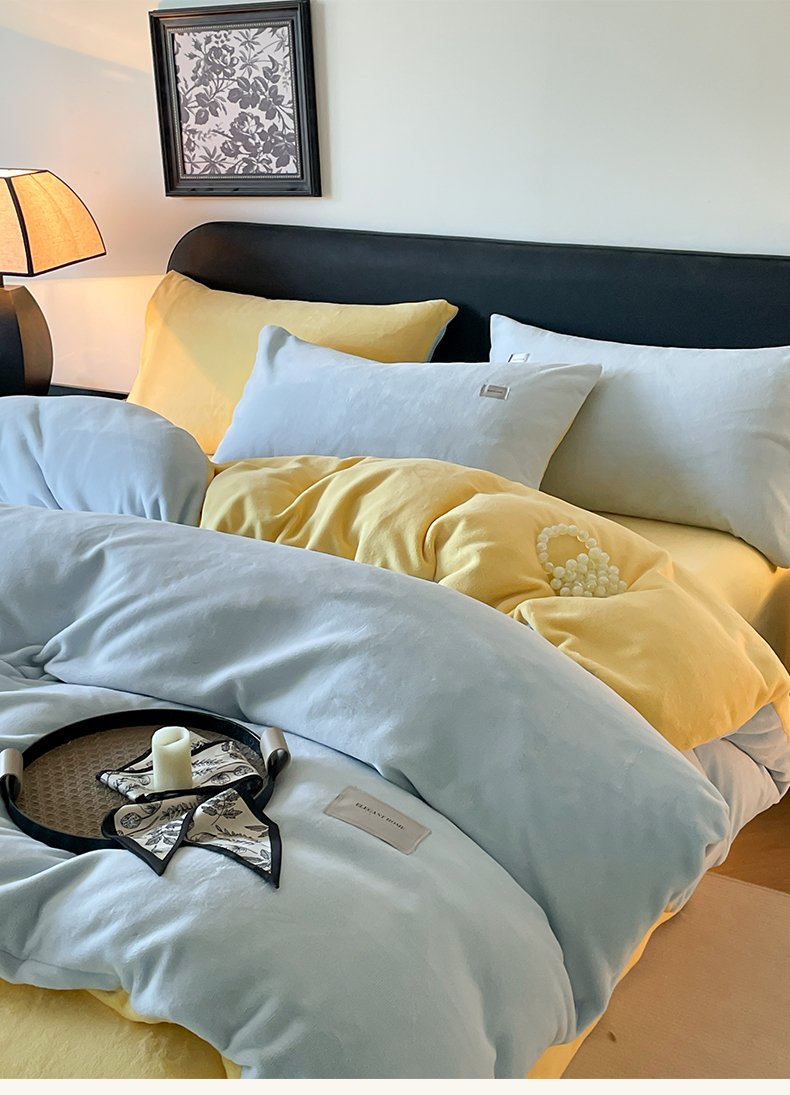 当前位置: 91家纺网 > 商品网购 > 床品套件 > 四件套 > 牛奶绒四件套 > ab家纺 2025新款保暖舒适纯色牛奶绒四件套 天空蓝柠檬黄