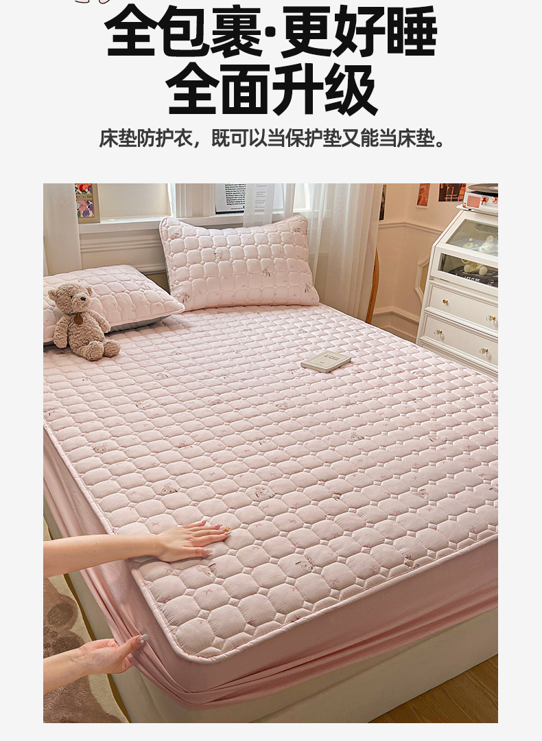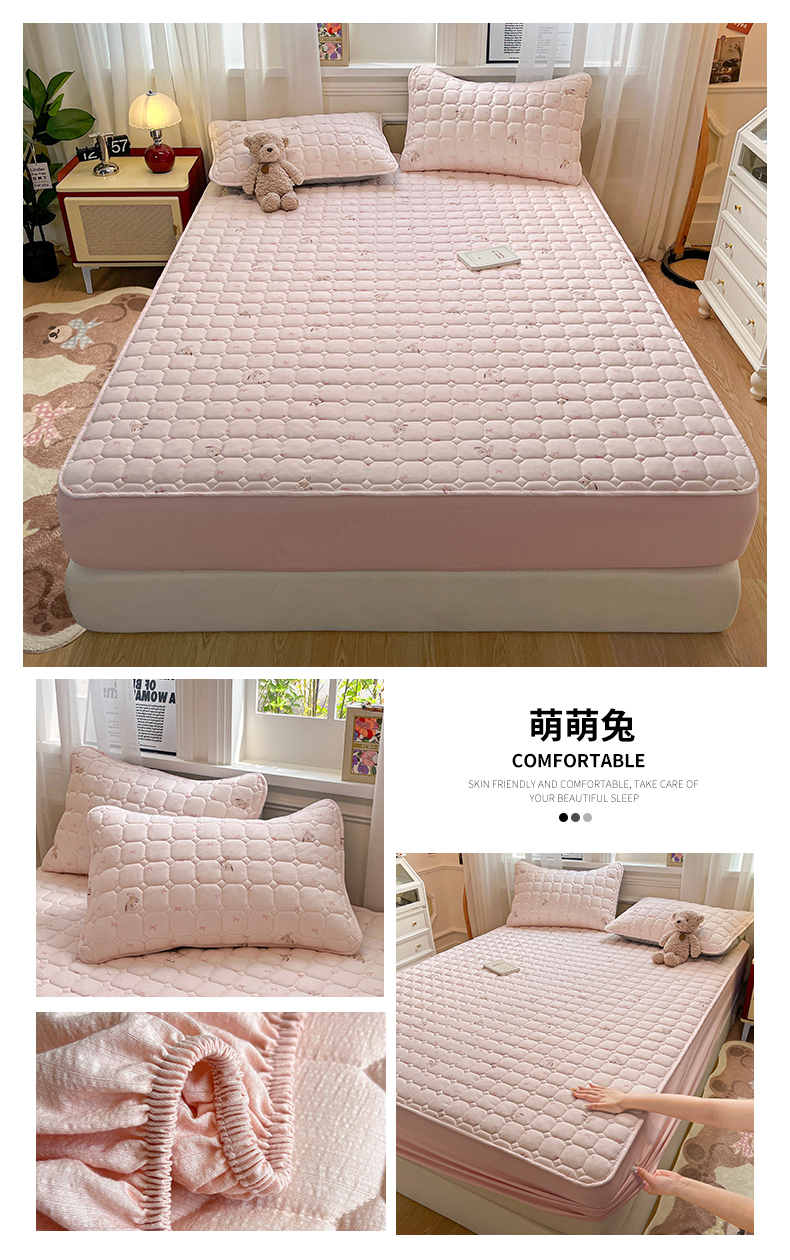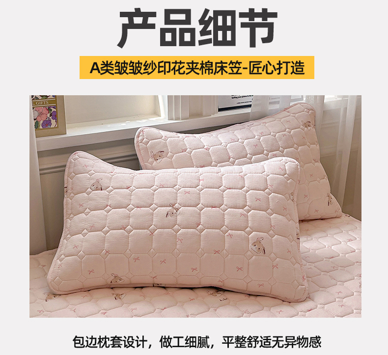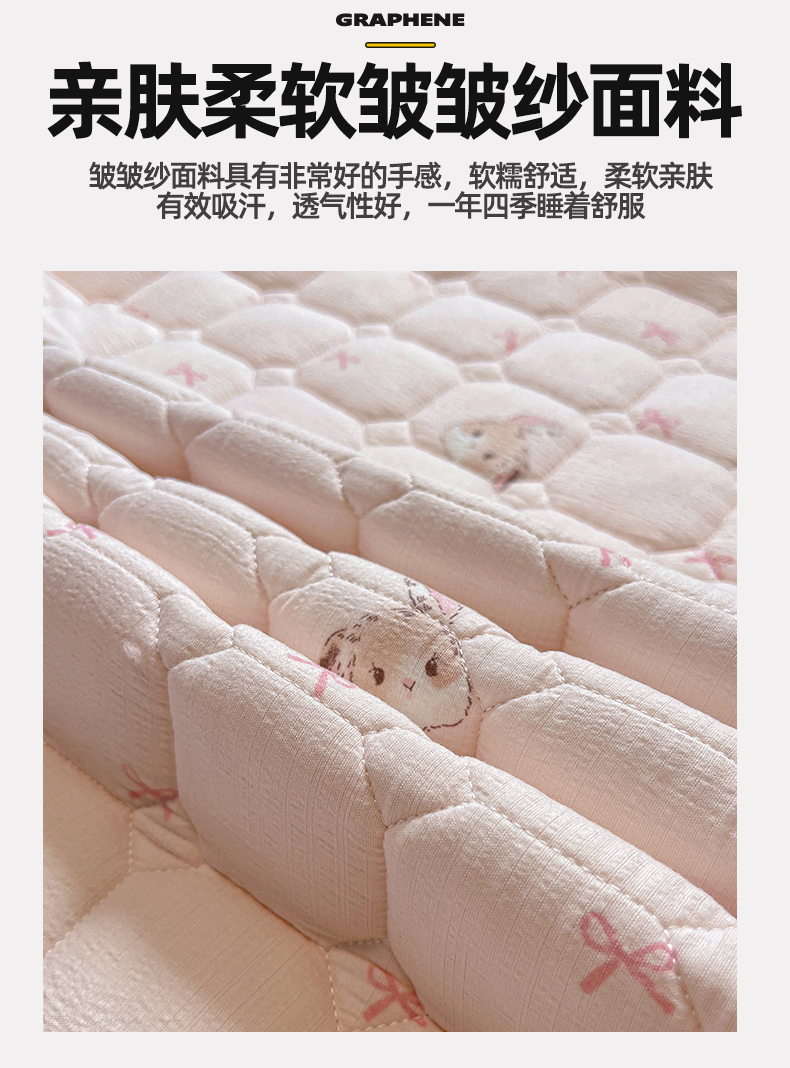 商品名称:布卢姆床垫 2025新款A类皱皱纱印花夹棉床笠 萌萌兔