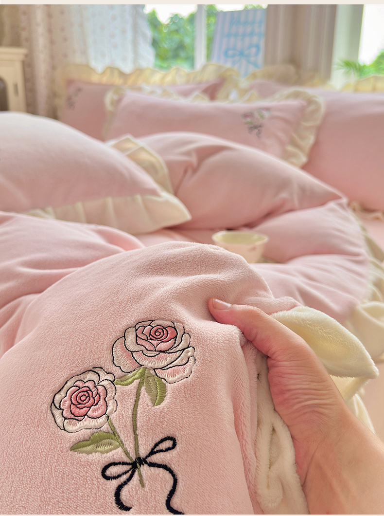 (总)娜娜 2025新款法式花边刺绣牛奶绒四件套