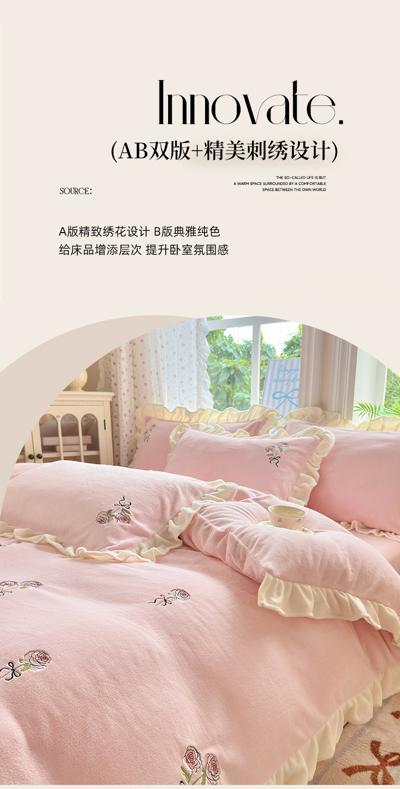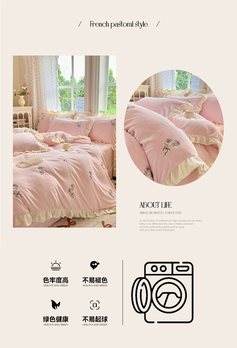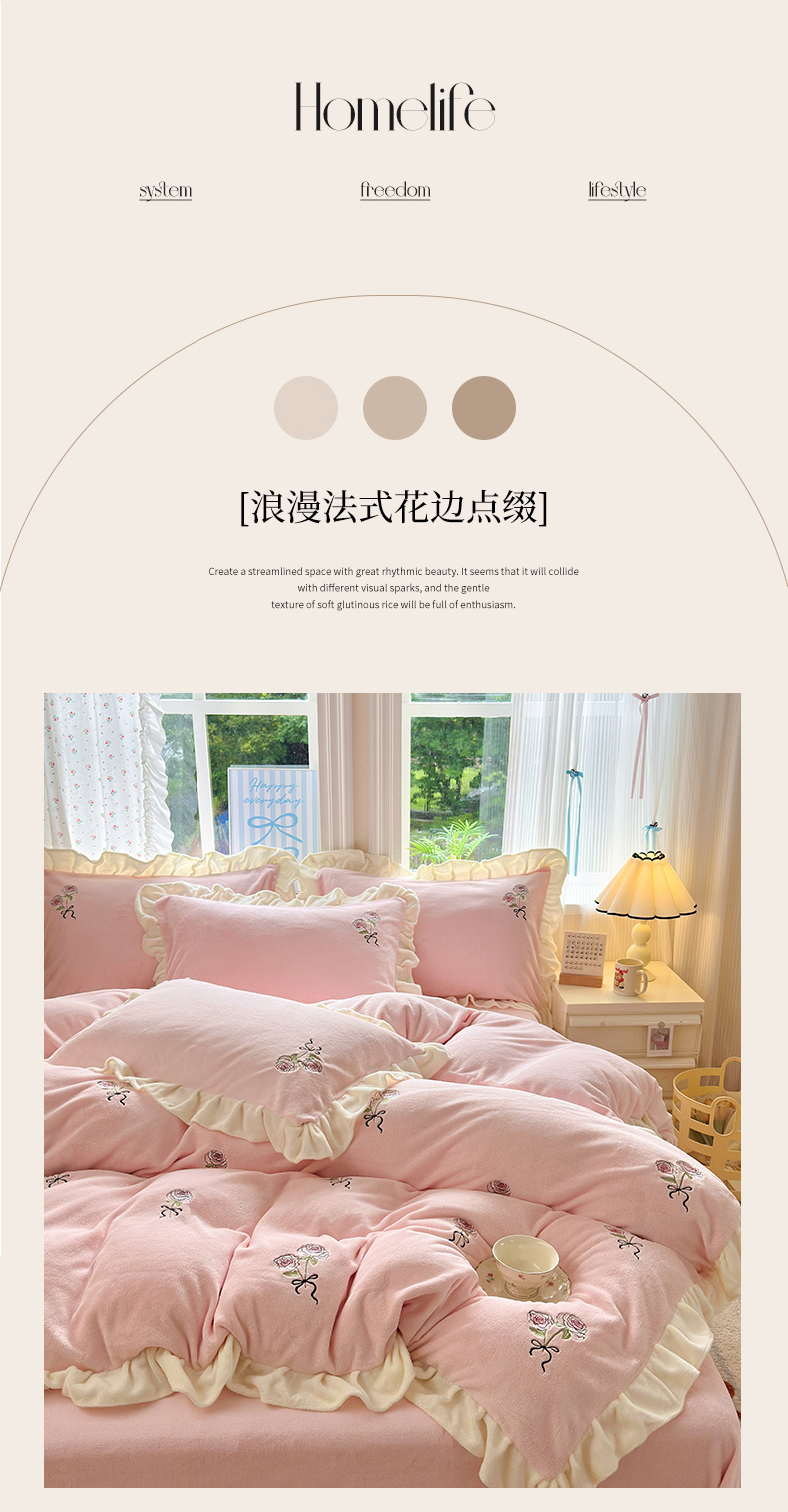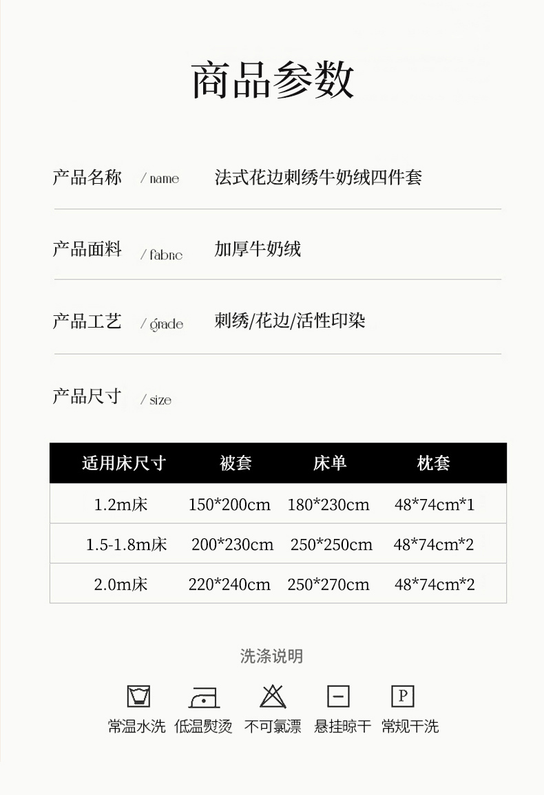 商品名称:(总)娜娜 2025新款法式花边刺绣牛奶绒四件套
