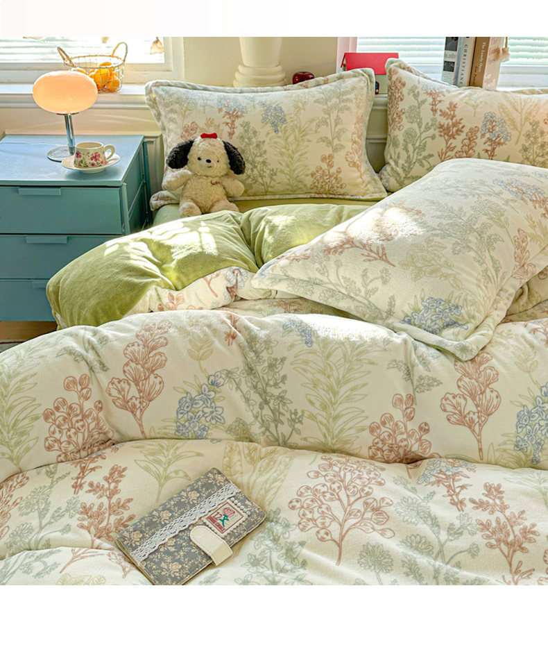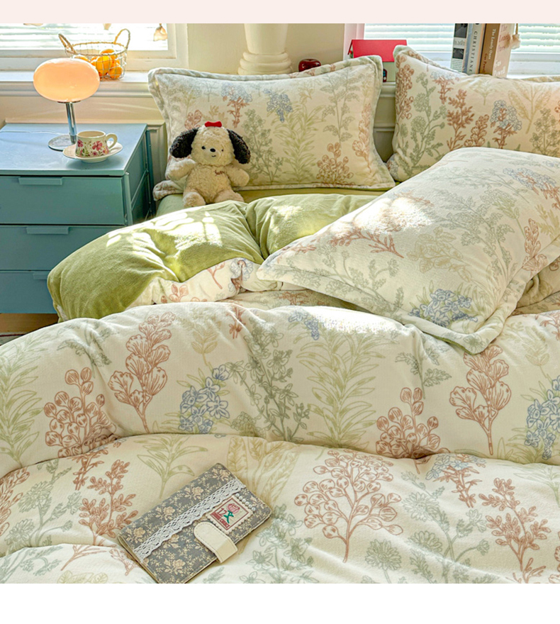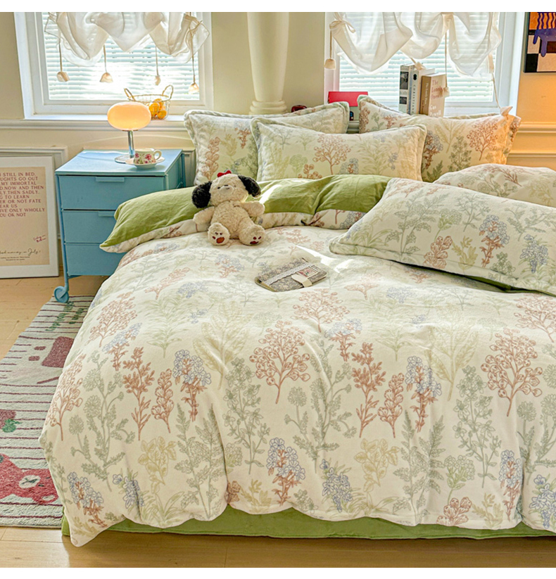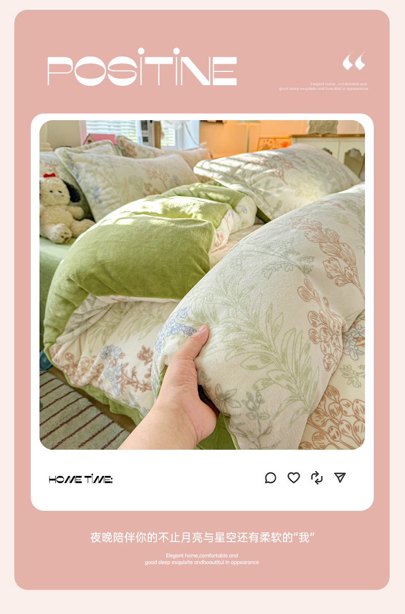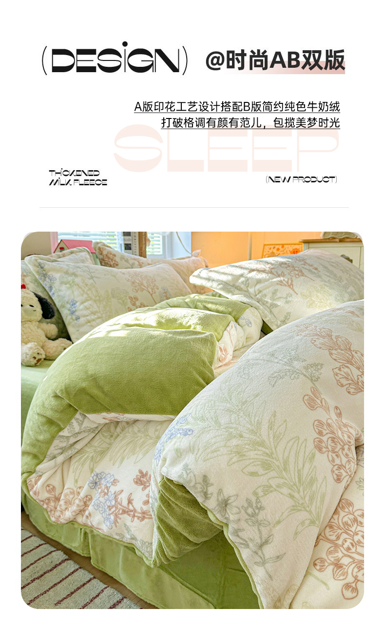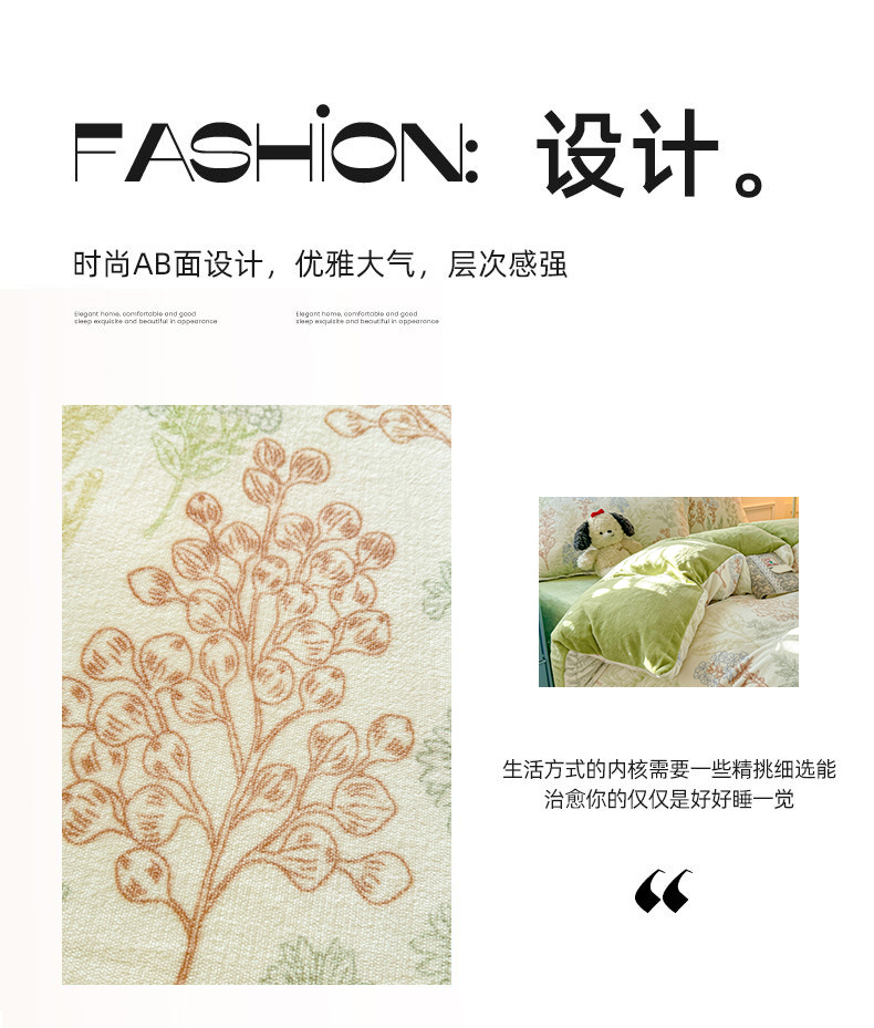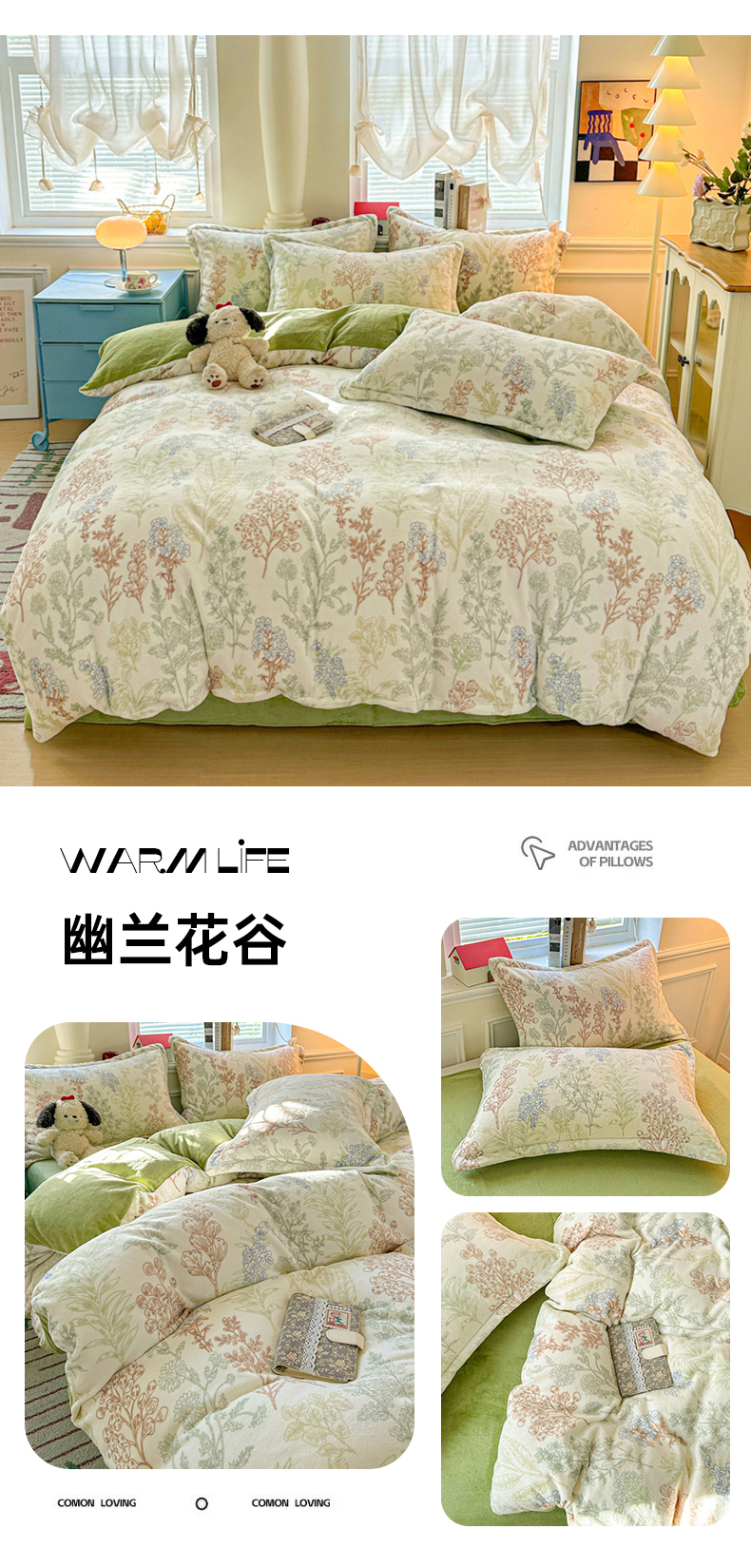 商品名称:卡普家居 2025新款加厚保暖牛奶绒系列--四件套 幽兰花谷