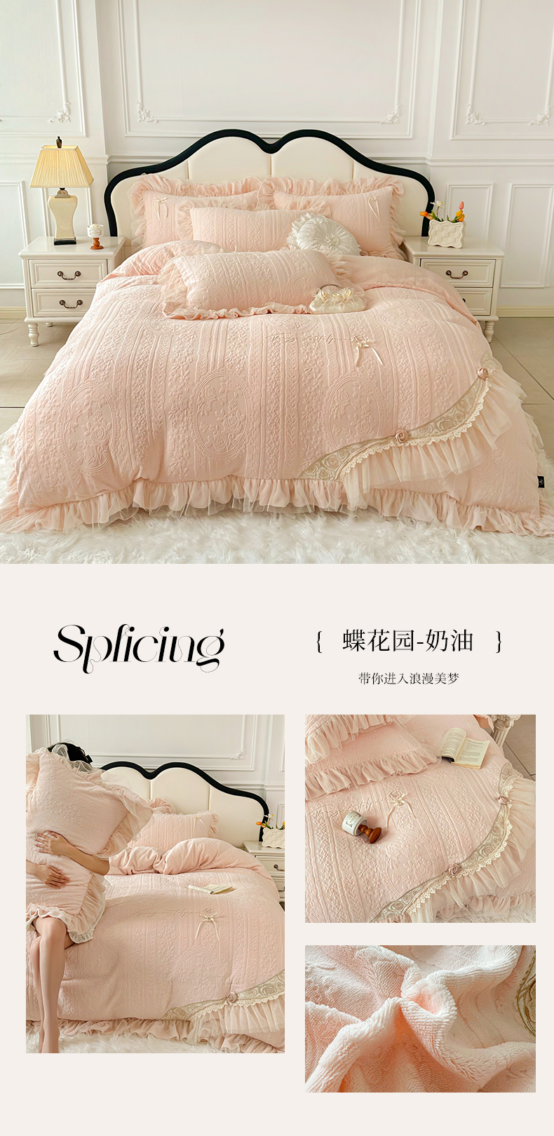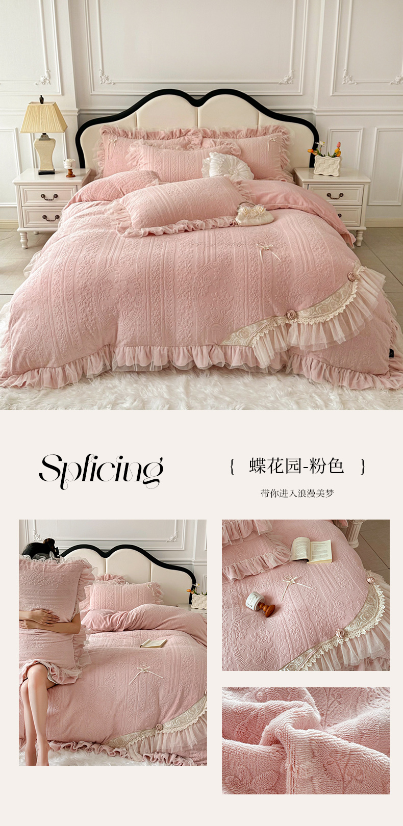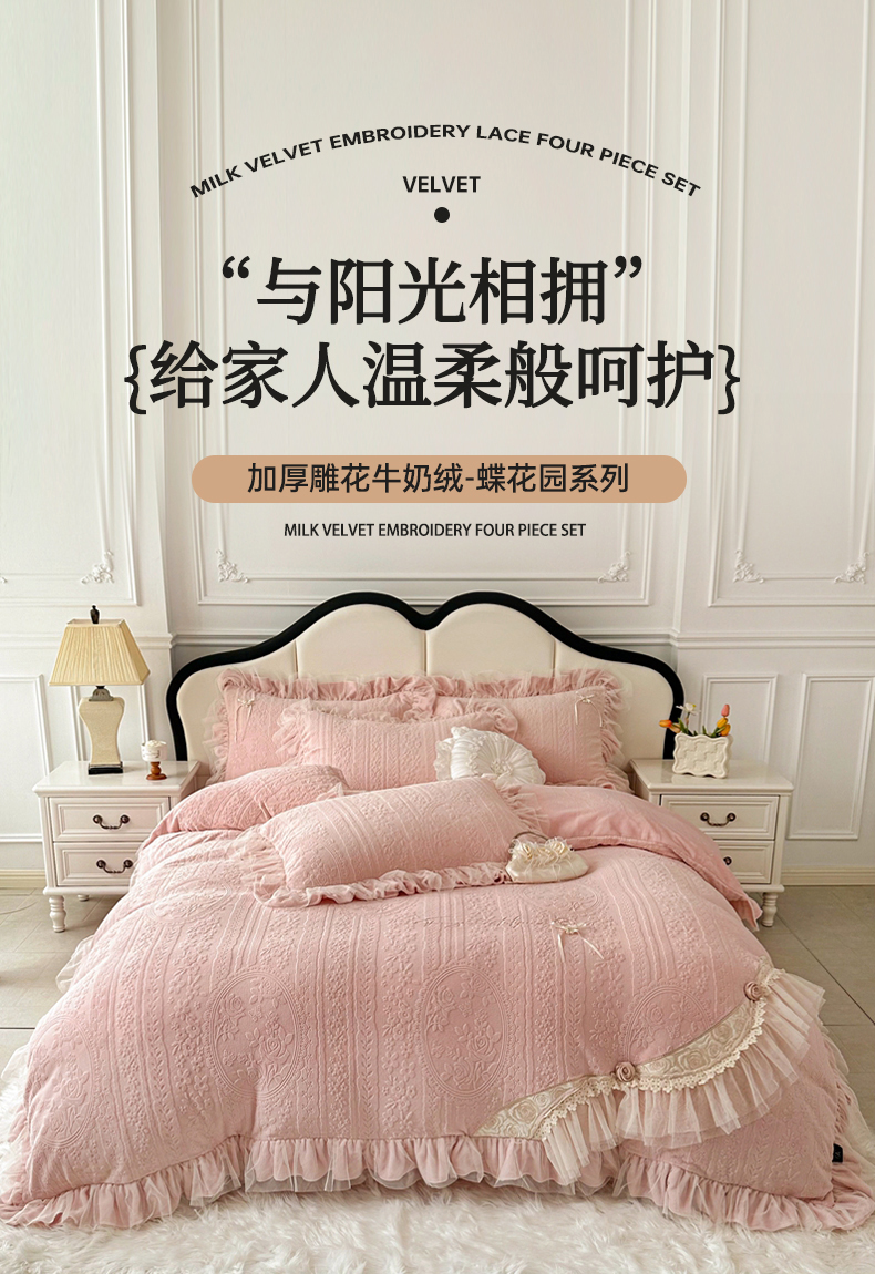 (总)金绣美居 2025新款卡通贴布绣款牛奶绒四件套-公主,公主粉,公主蓝