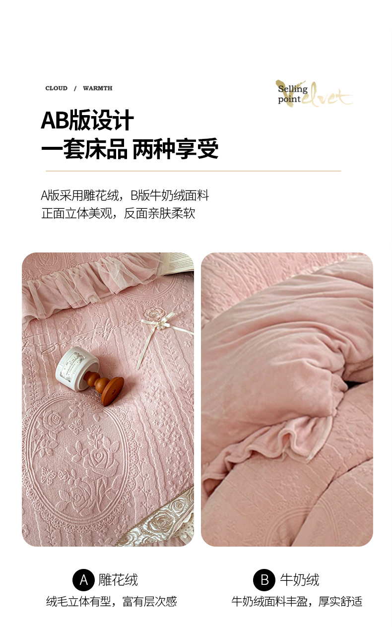 (总)金绣美居 2025新款加厚雕花牛奶绒床盖款四件套-郁金香(控价不低于219/229),郁金香-湖水蓝,郁金香-新媚紫,郁金香-玉色