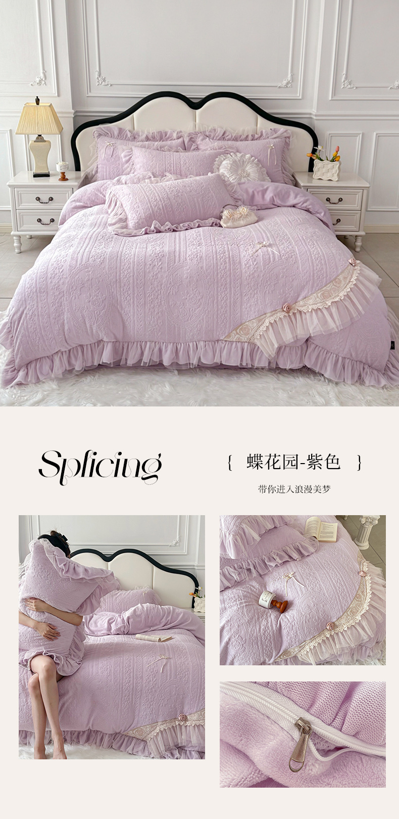 商品名称:金绣美居 2025新款加厚雕花牛奶绒四件套-蝶花园 蝶花园-新媚紫
