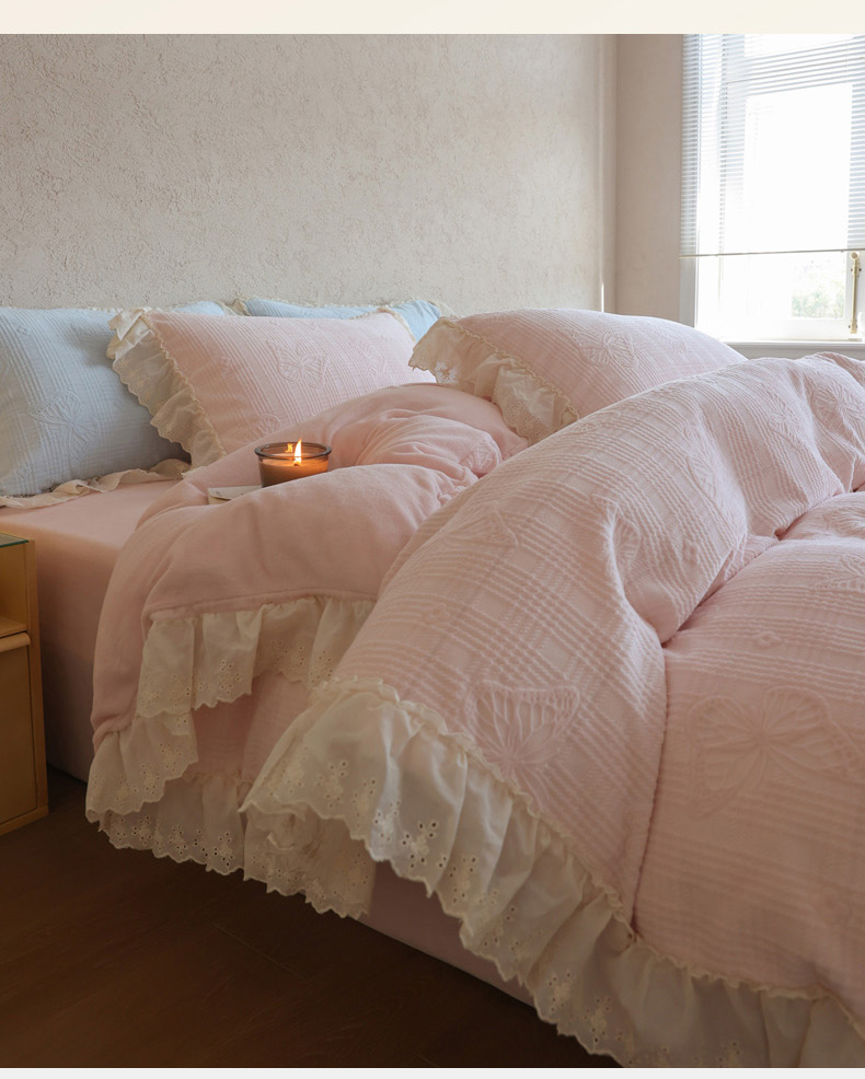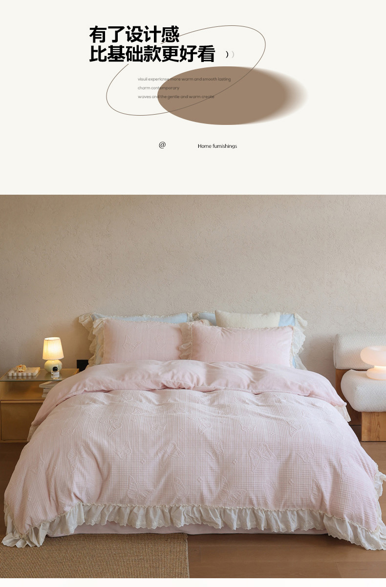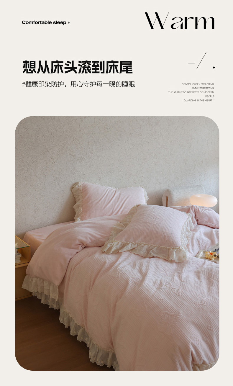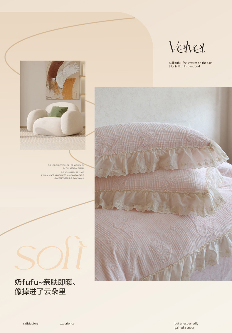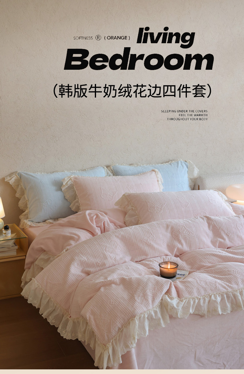 当前位置: 91家纺网 > 商品网购 > 床品套件 > 四件套 > 牛奶绒四件套 > (总)万盛家纺 2025新款韩版牛奶绒花边四件套-翩翩蝴蝶