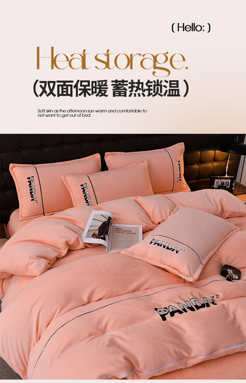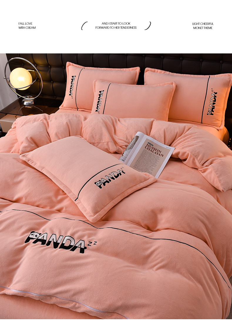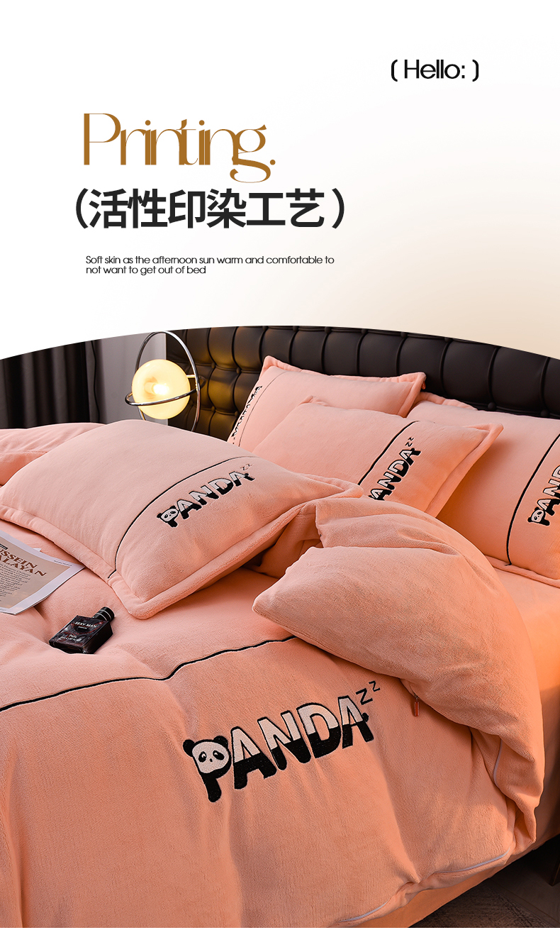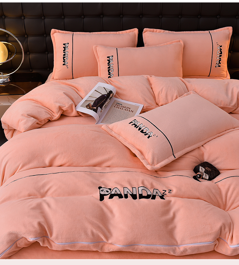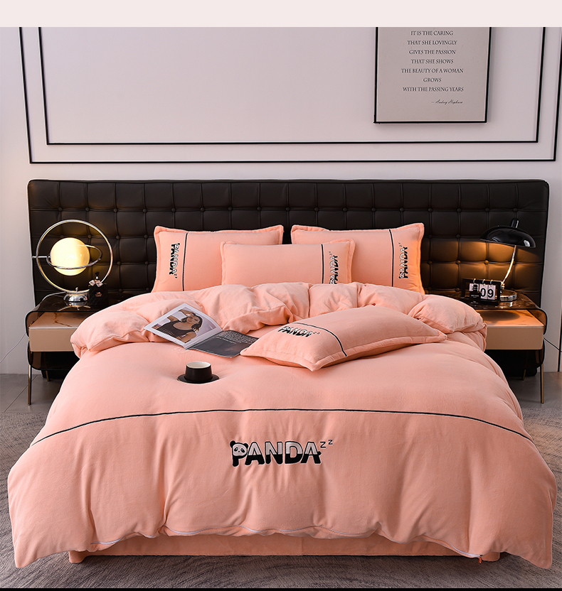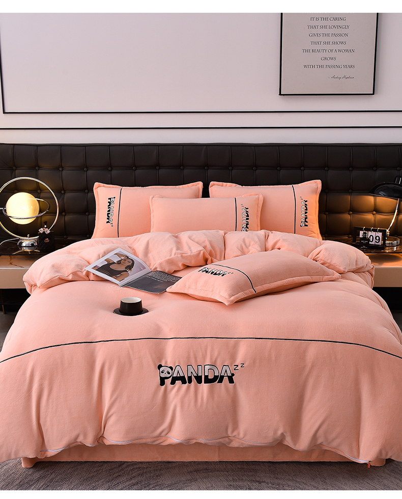 炫拼家纺 2025新款小熊猫刺绣款高克重牛奶绒四件套 小熊猫-香妃粉