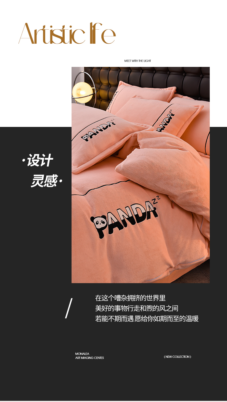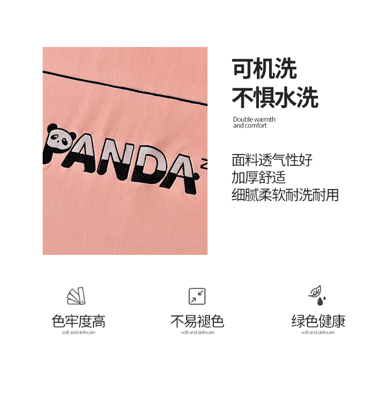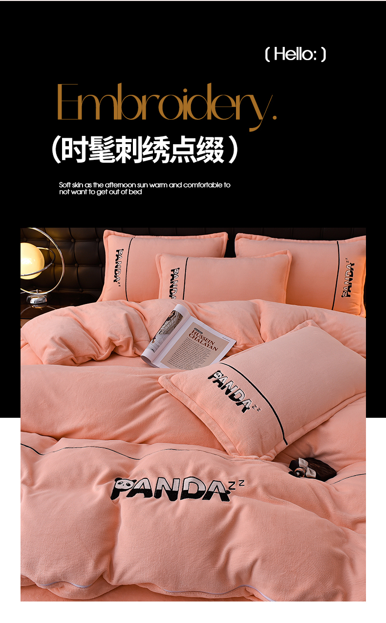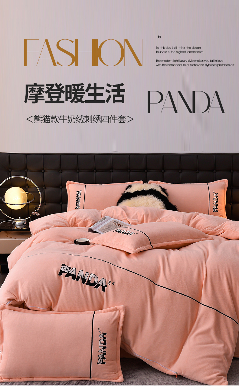 商品名称:炫拼家纺 2025新款小熊猫刺绣款高克重牛奶绒四件套 小熊猫-香妃粉