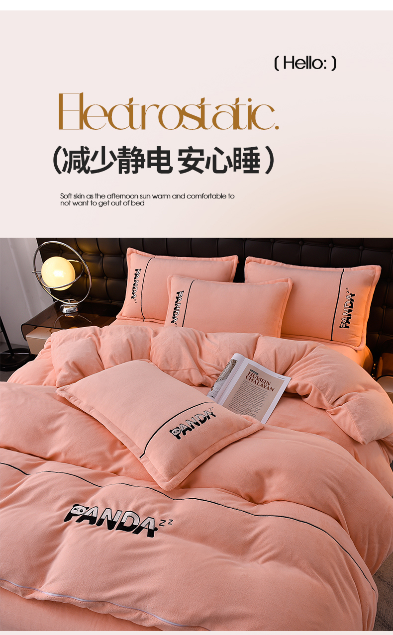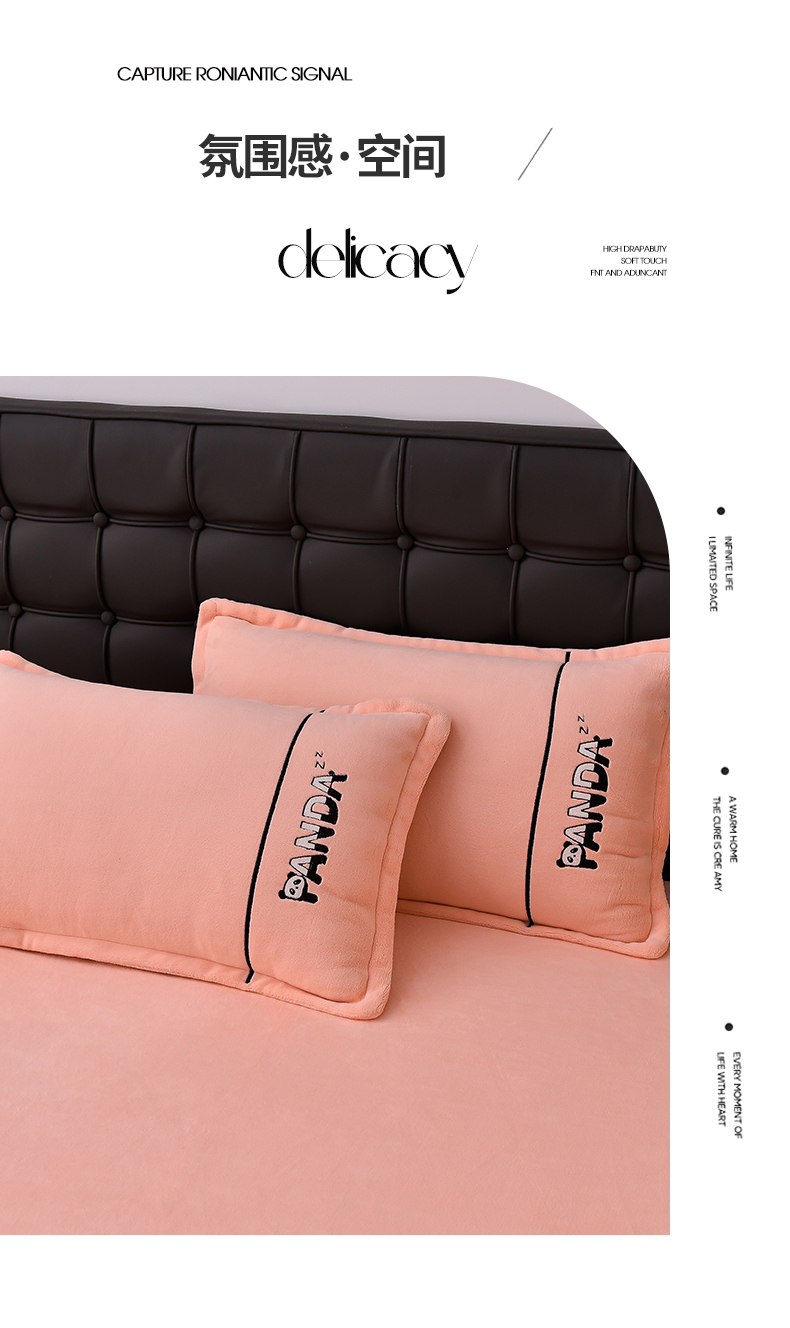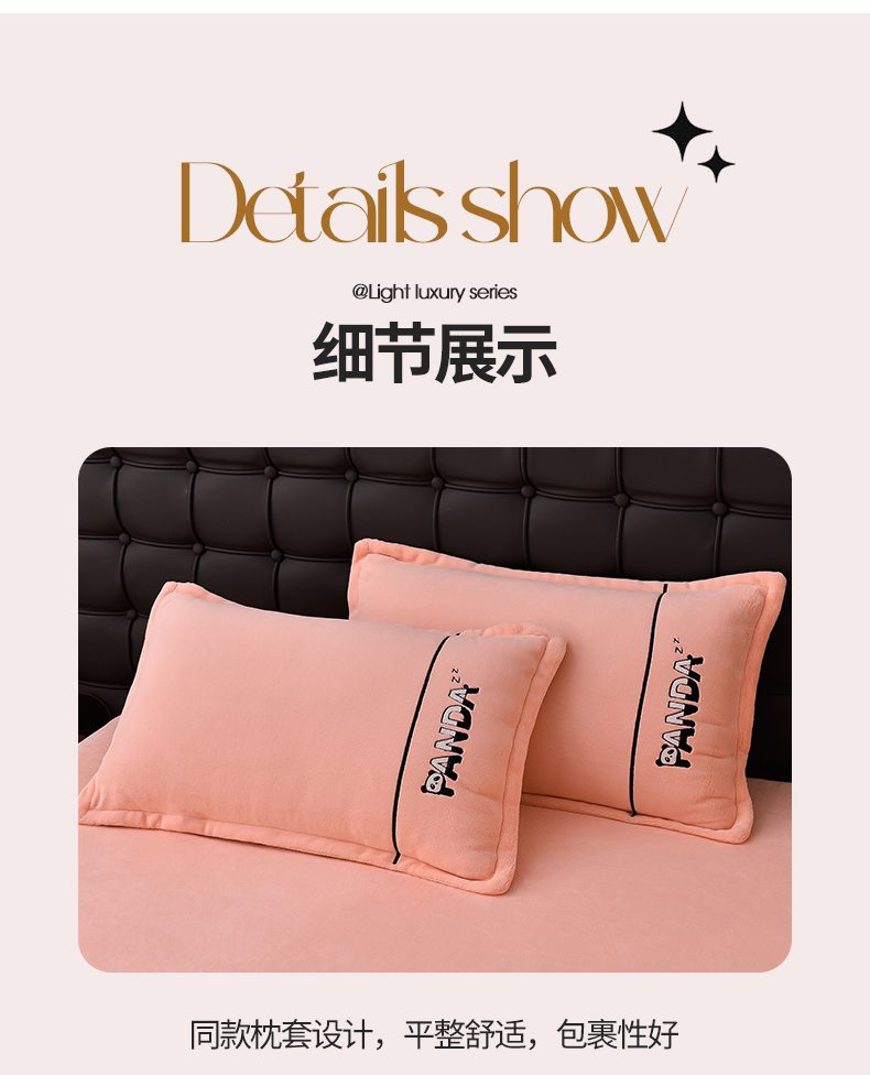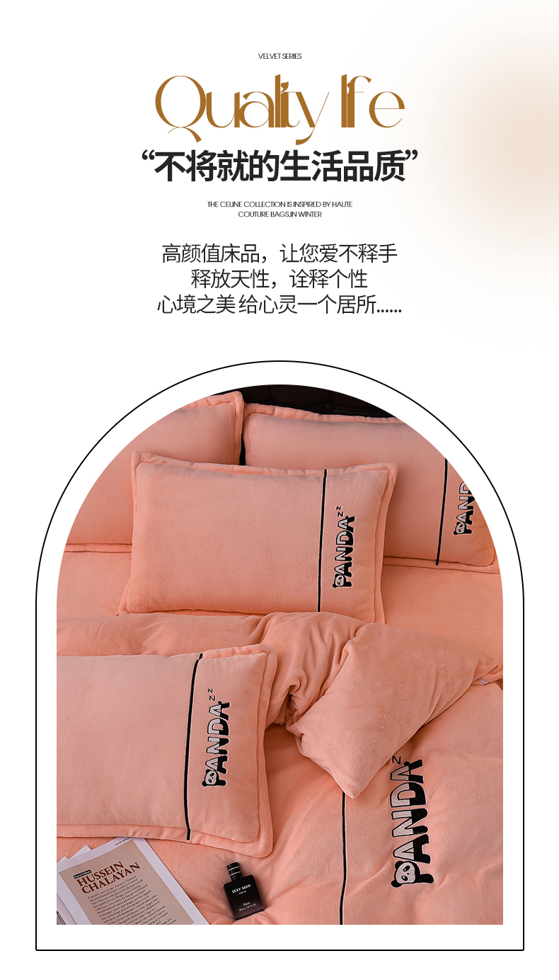 商品名称:炫拼家纺 2025新款小熊猫刺绣款高克重牛奶绒四件套 小熊猫-香妃粉
