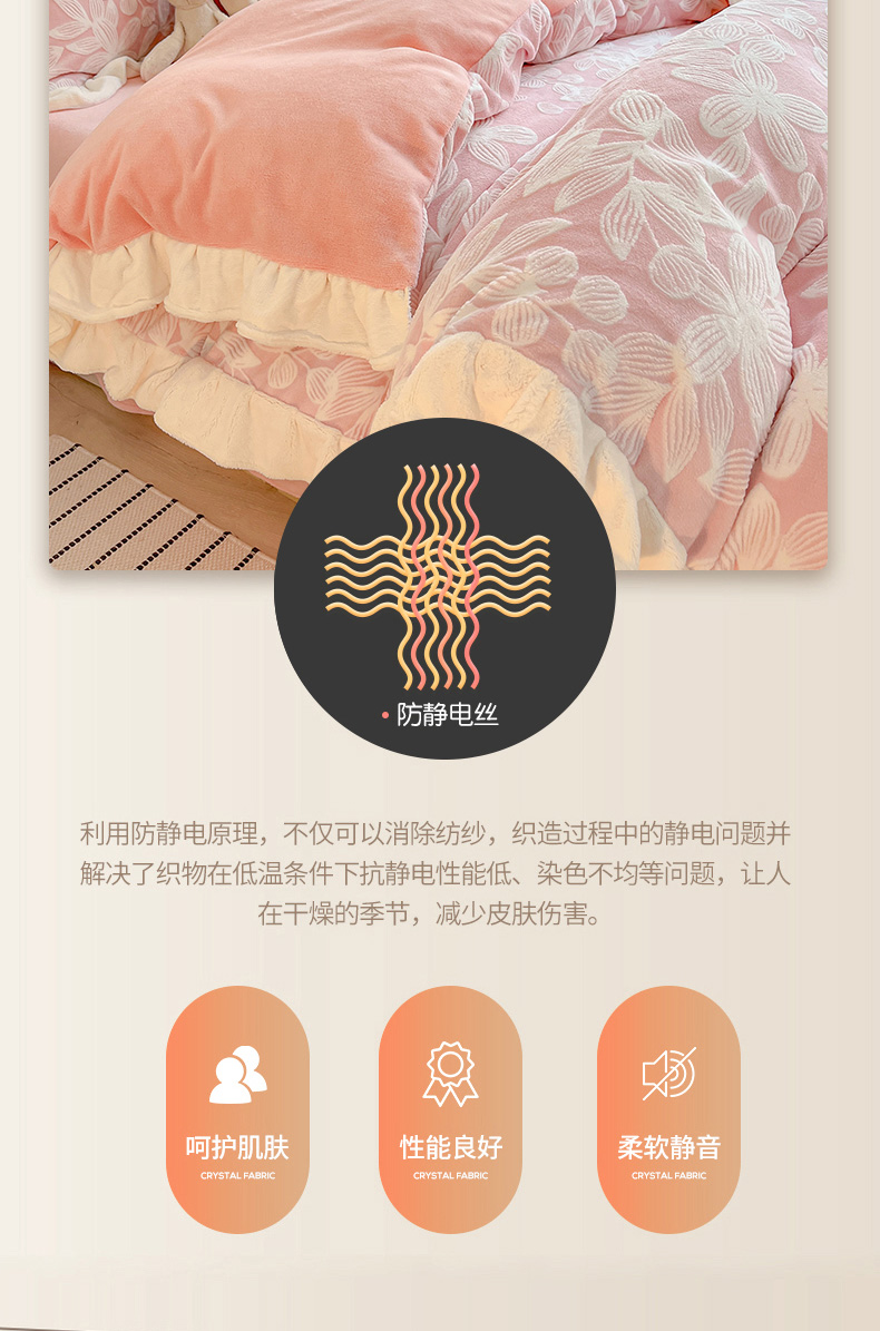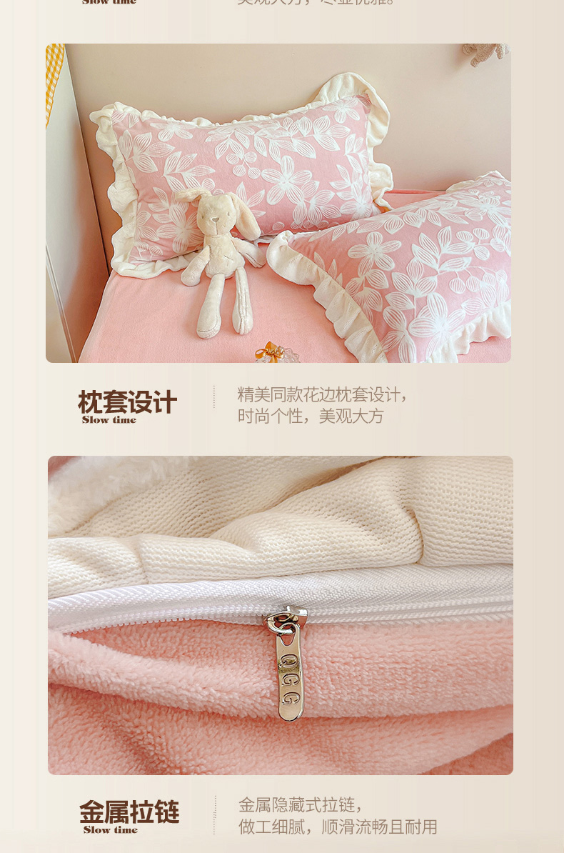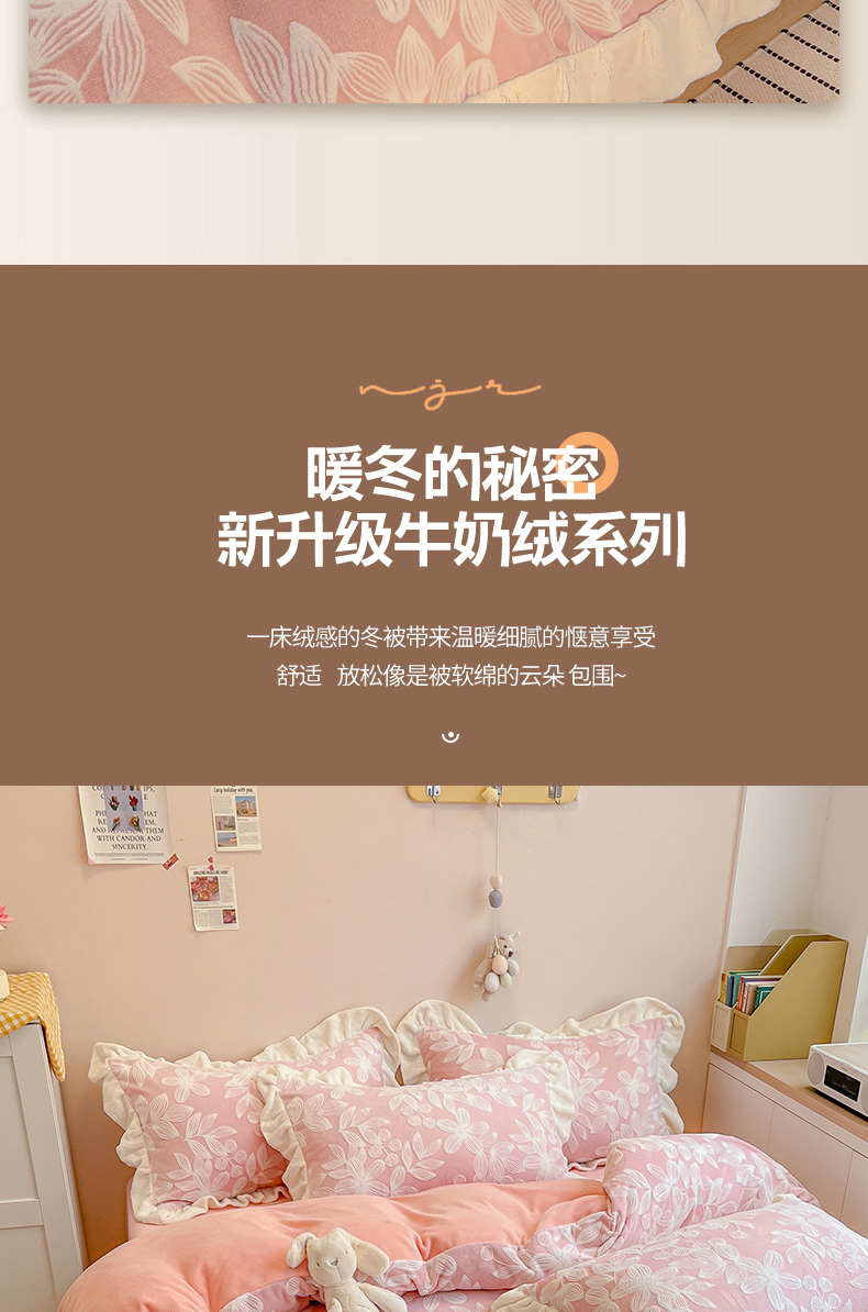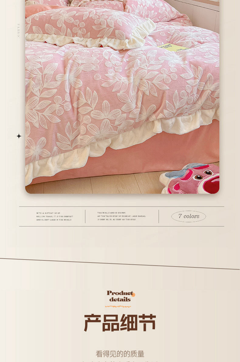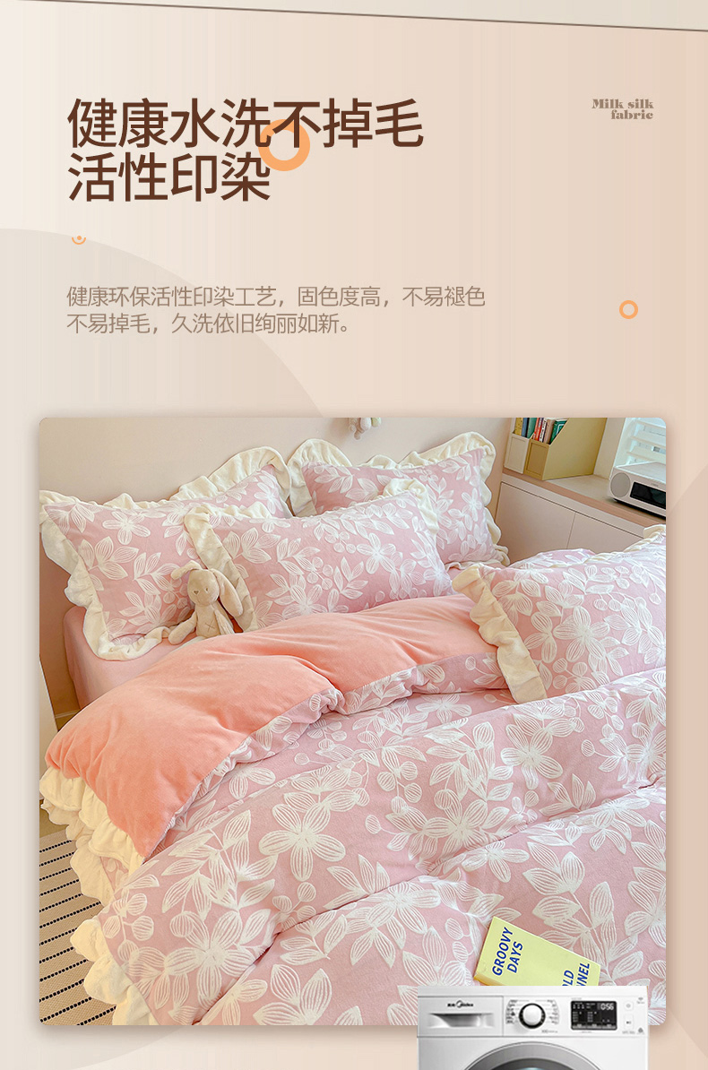 当前位置: 91家纺网 > 商品网购 > 床品套件 > 四件套 > 牛奶绒四件套 > 琪格格纺织 2025新款全消光小清新花边款雕花牛奶绒四件套 雕花绒花边-爱在秋冬樱花粉
