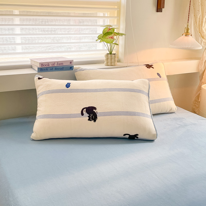 雅居纺家纺 2025新款高克重牛奶绒印花单枕套 时尚爱心