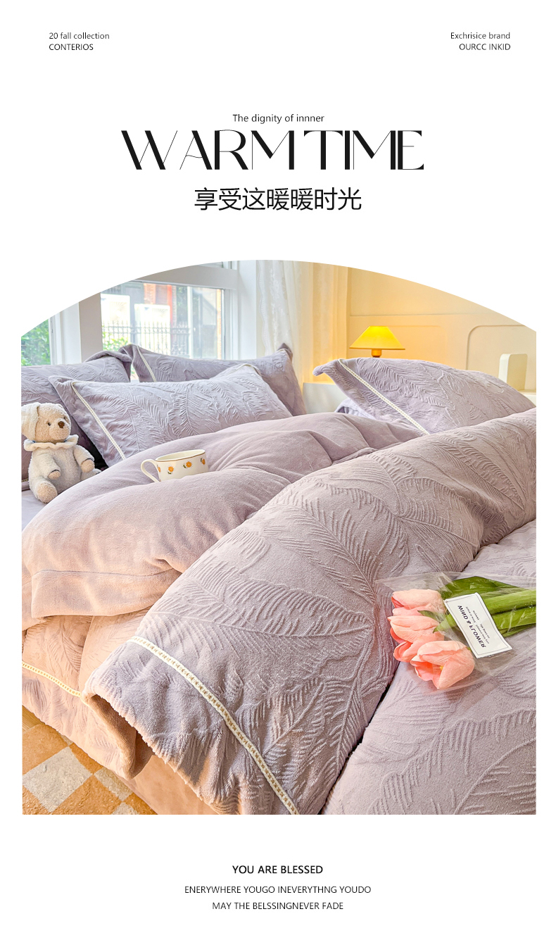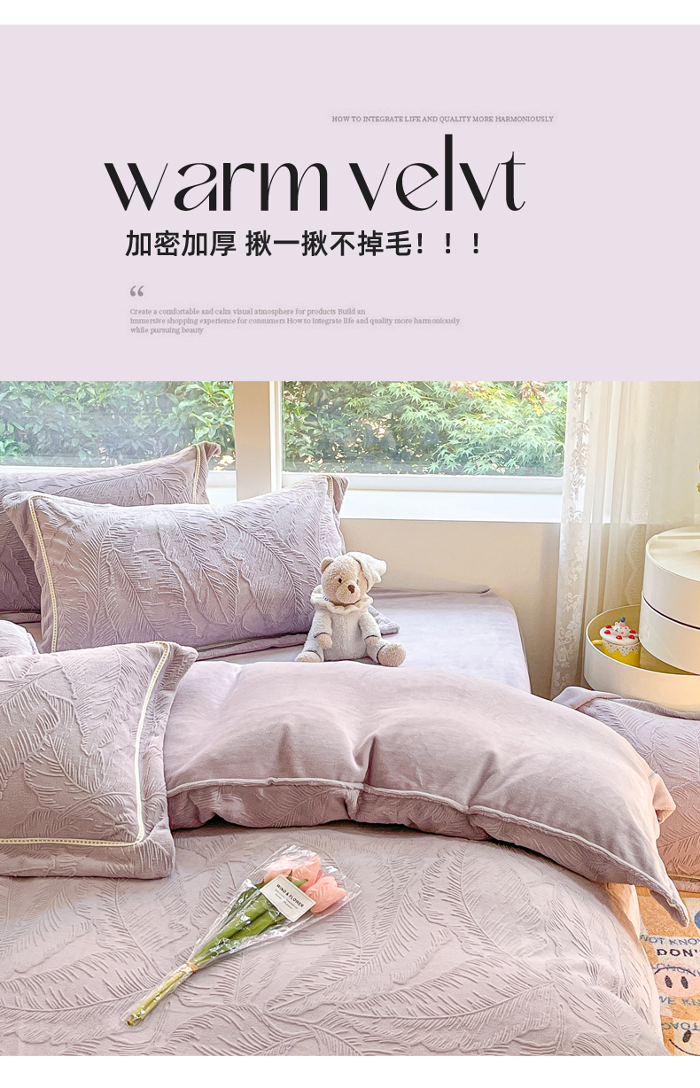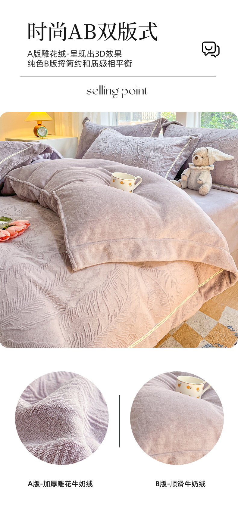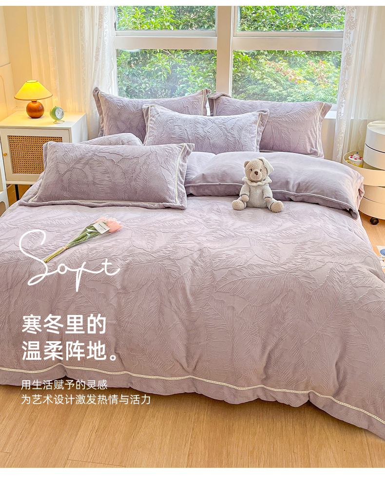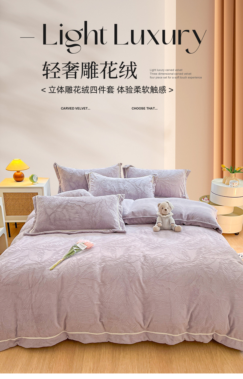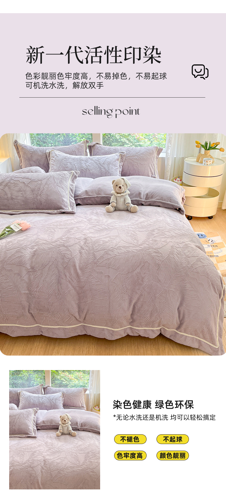 (总)艾唯希家纺 2025新款韩版全消光雕花绒工艺四件套牛奶绒-郁金之恋,郁金之恋-紫,郁金之恋-粉,郁金之恋-蓝