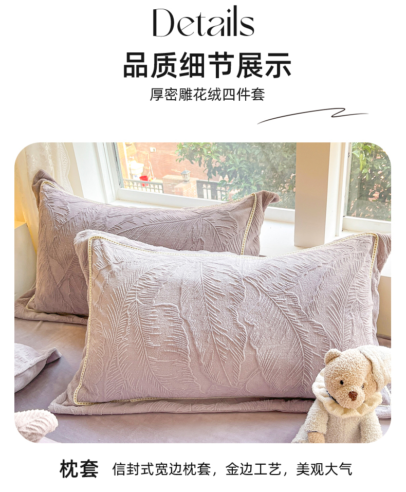 艾唯希家纺 2025新款全消光雕花绒织带款四件套牛奶绒-雕花织带系列 花之蔓-灰紫