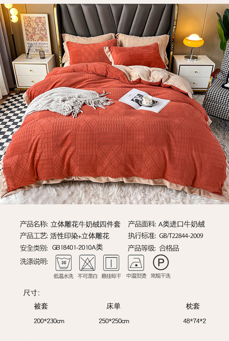 (总)2024秋冬新款全消光拼角雕花绒牛奶绒四件套,安娜-豆粉,安娜-抹绿,安娜-奶油橙,典雅-豆粉,典雅-高级灰,典雅-抹绿,典雅-奶油橙,慕丝-豆沙,慕丝-玫瑰粉,慕丝-奶油橙