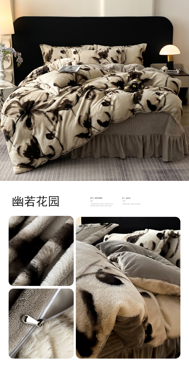 大麦家纺 25年新款高克重兔毛牛奶绒床盖四件套 幽若花园
