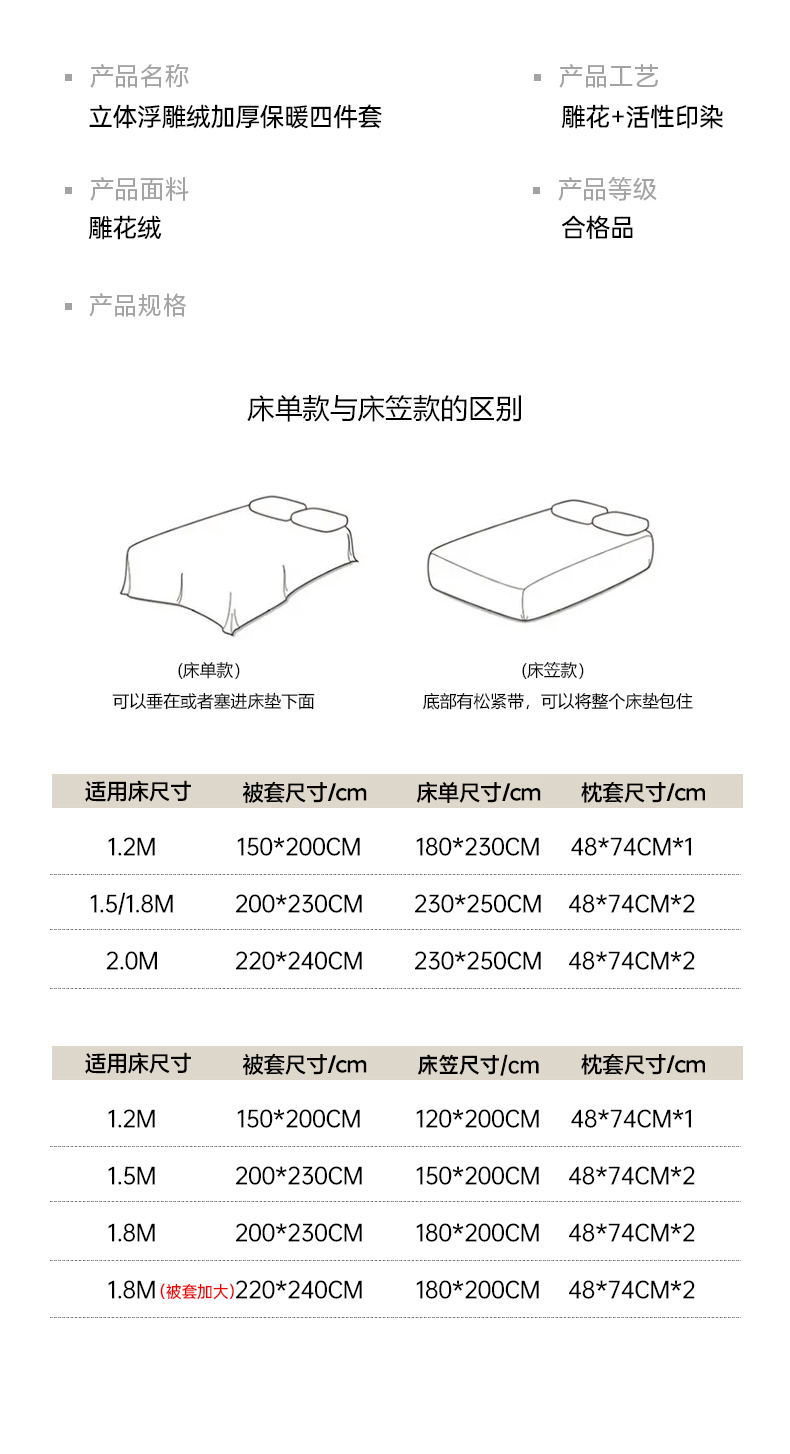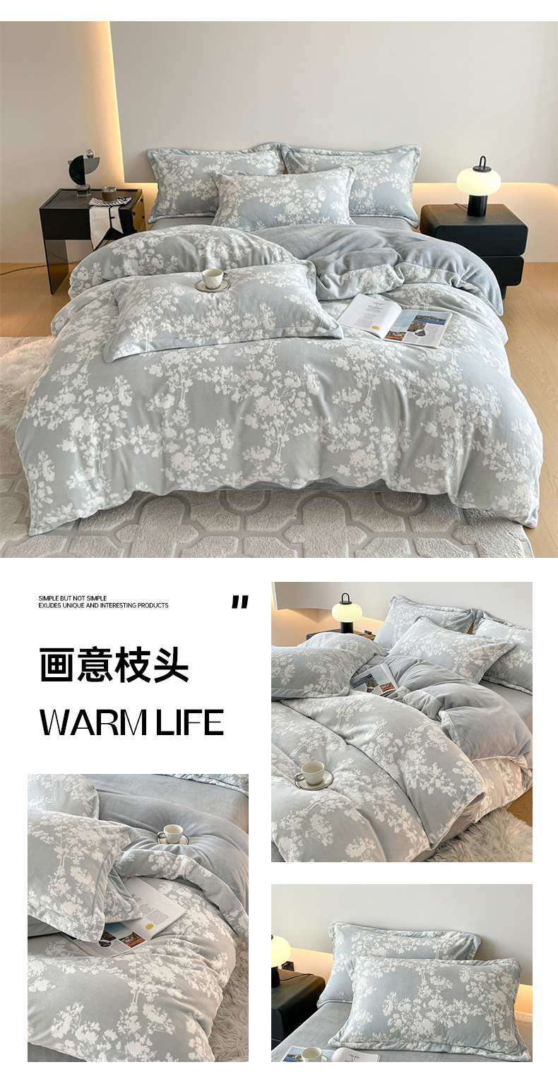 商品名称:梵克保罗 2025新款保暖舒适雕花绒四件套 云木-蓝
