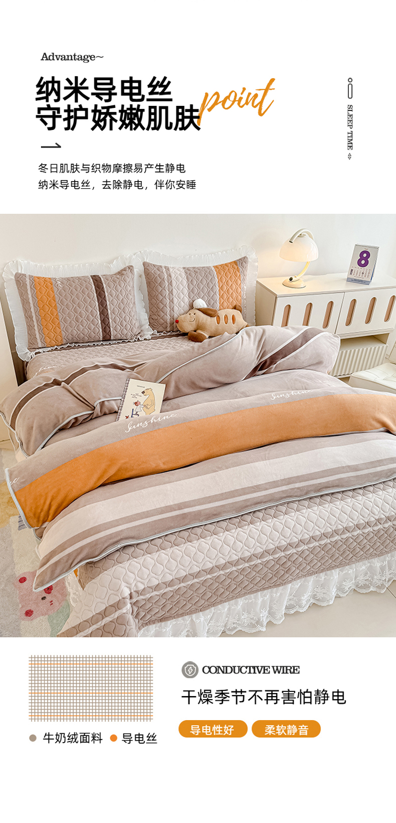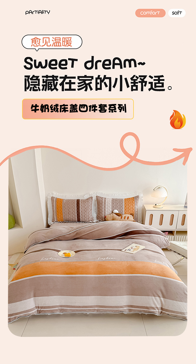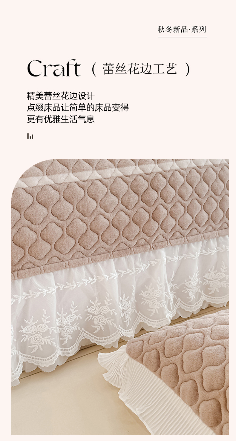 商品名称:冬然家纺 2025新款高克重牛奶绒蕾丝花边床盖系列 经典条纹