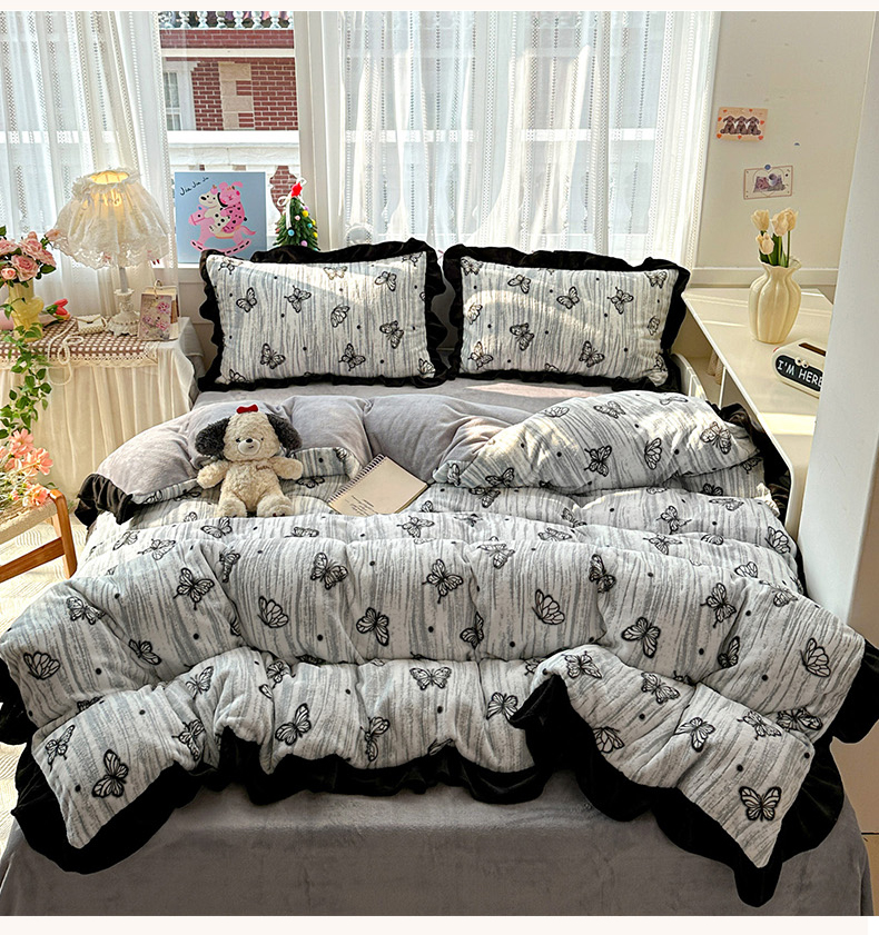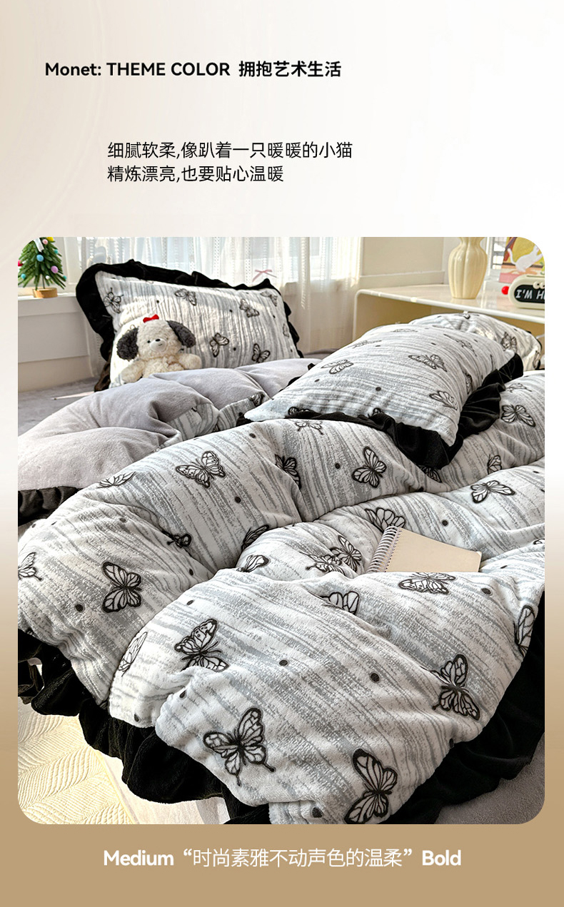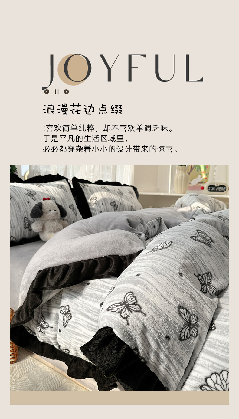 当前位置: 91家纺网 > 商品网购 > 床品套件 > 四件套 > 牛奶绒四件套 > 耀悦家纺 2025新款着色雕花黑边牛奶绒四件套-永恒蝴蝶系列 幻蝶-黑边工艺款