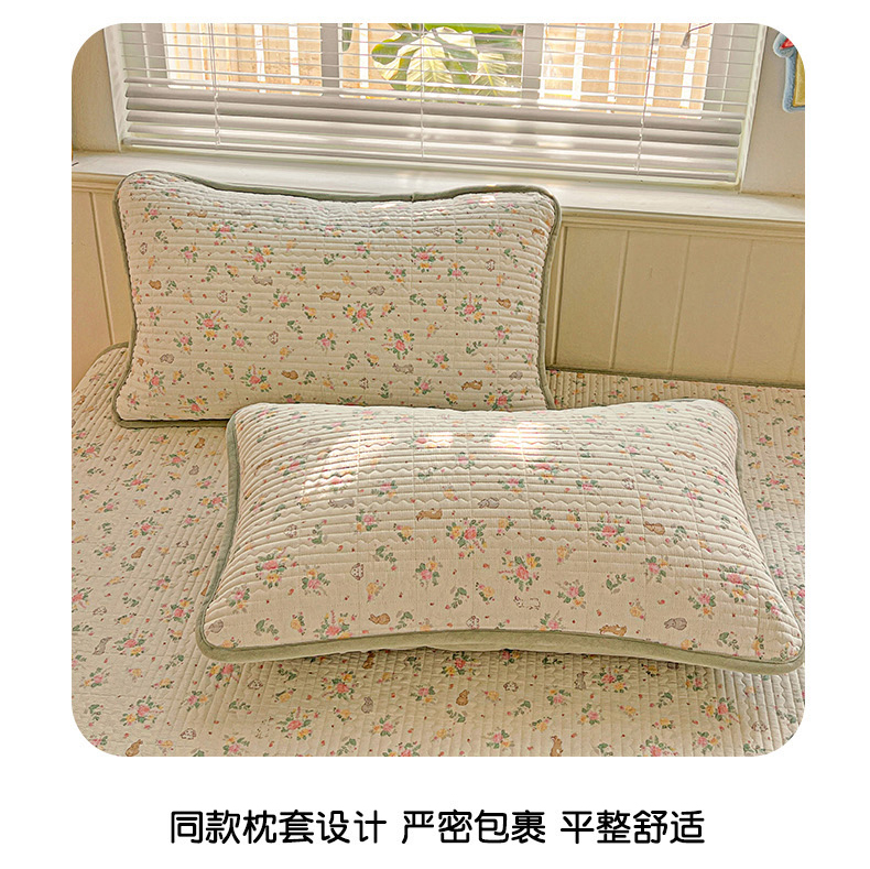 商品名称:漫时光 2025新款正面纯棉反面宝宝绒印花夹棉砂洗床盖四件套 花园兔