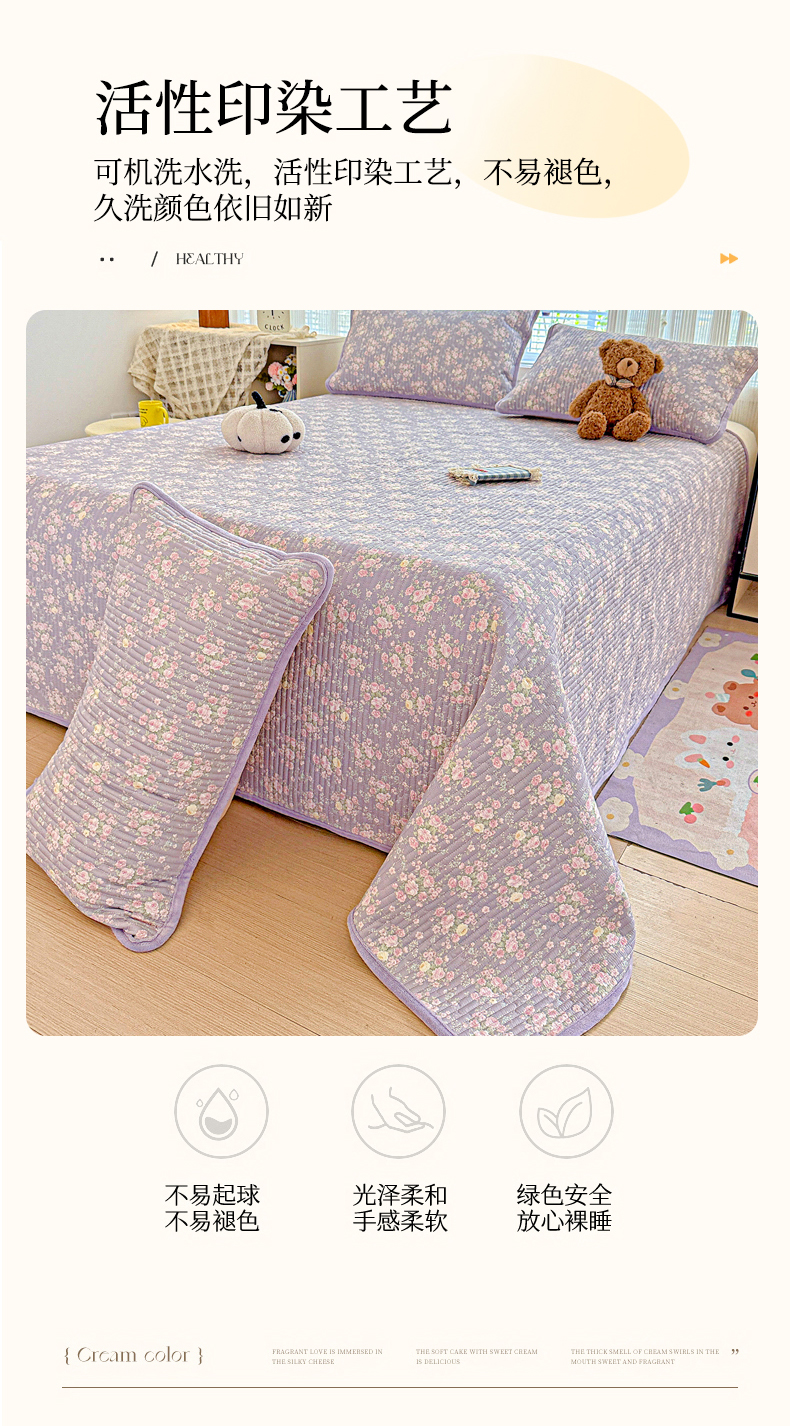 • 91家纺网 家纺一手货源 找家纺 恒尚居 2025新款全棉牛奶绒床盖四季可用纯棉夹棉床单床褥垫三件套-秋冬款系列一 花田物语【A纯棉-B牛奶绒】