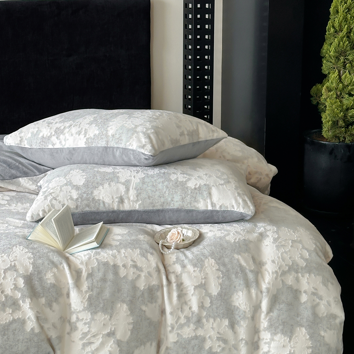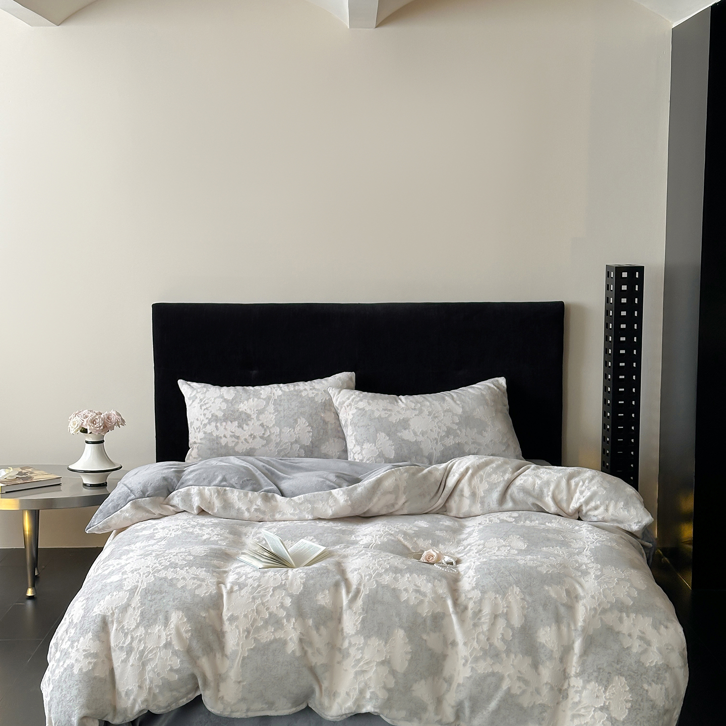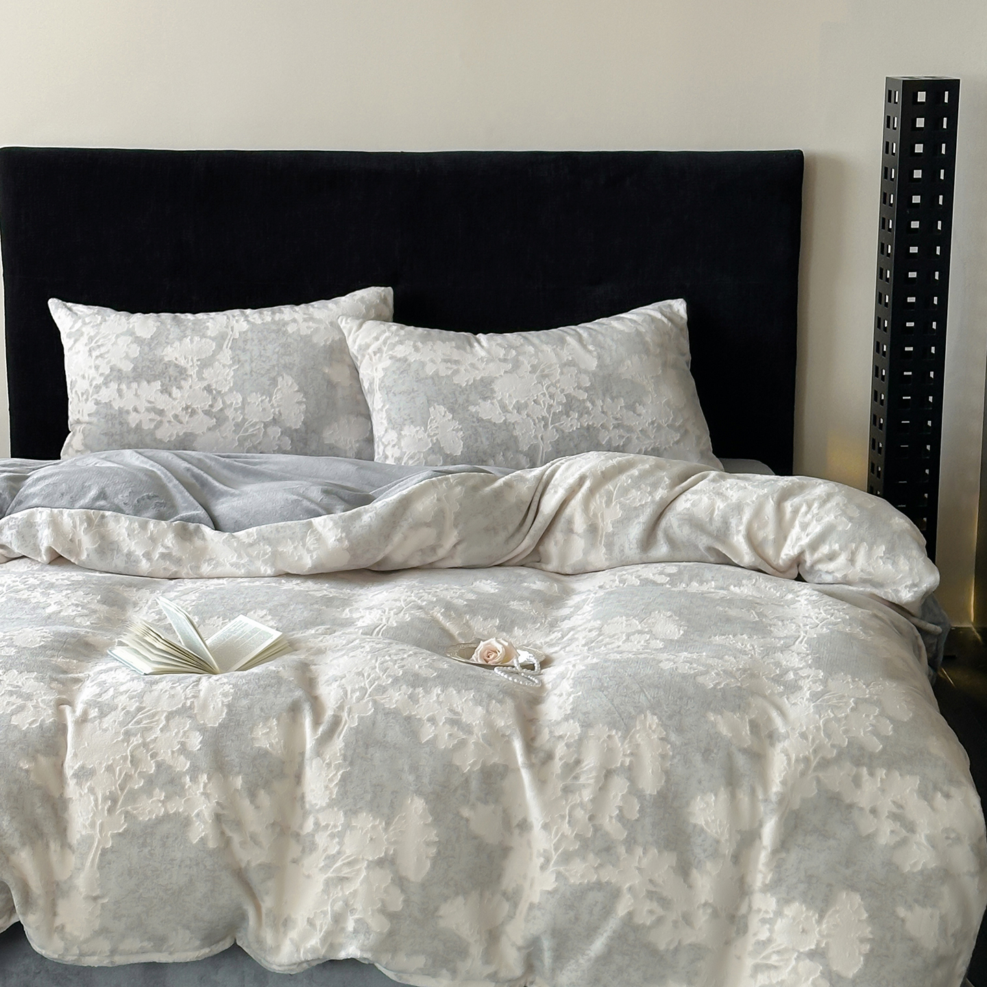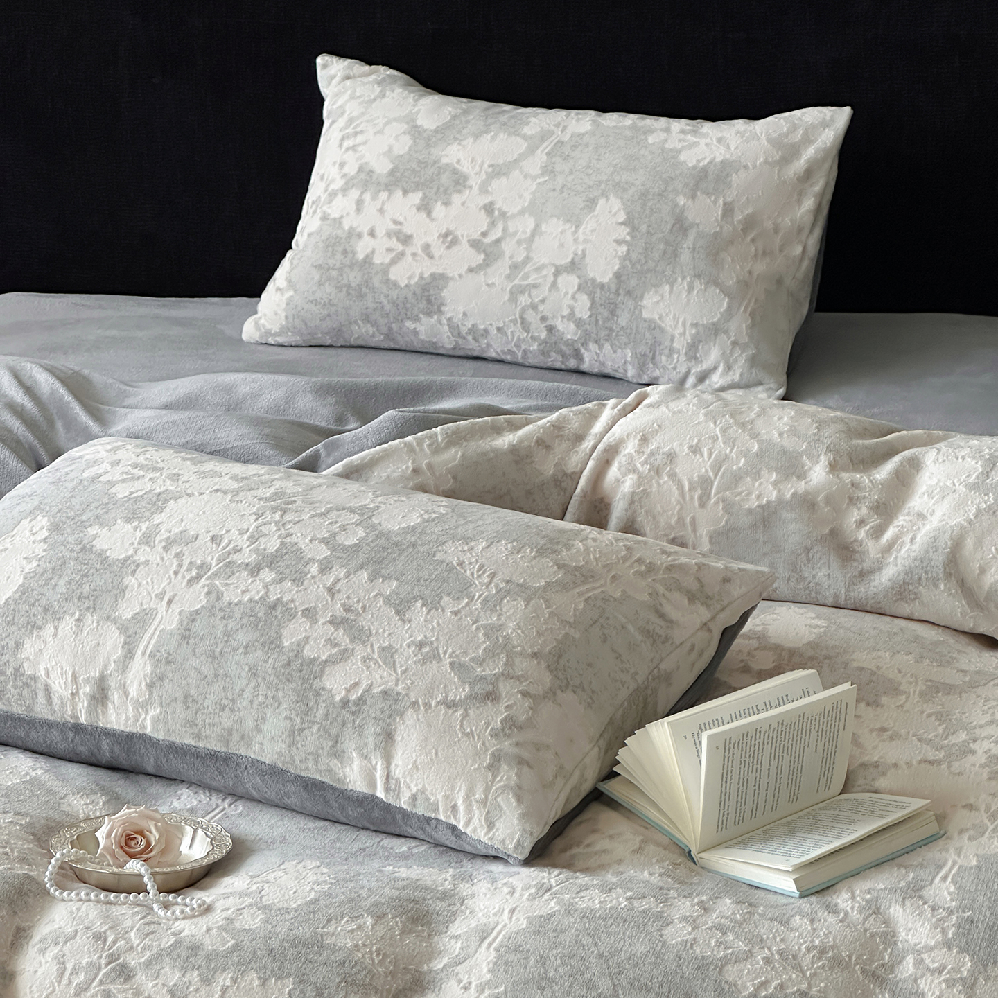 (总)梦享生活家居 2025新款全棉肌理纹提花四件套,灰黑色