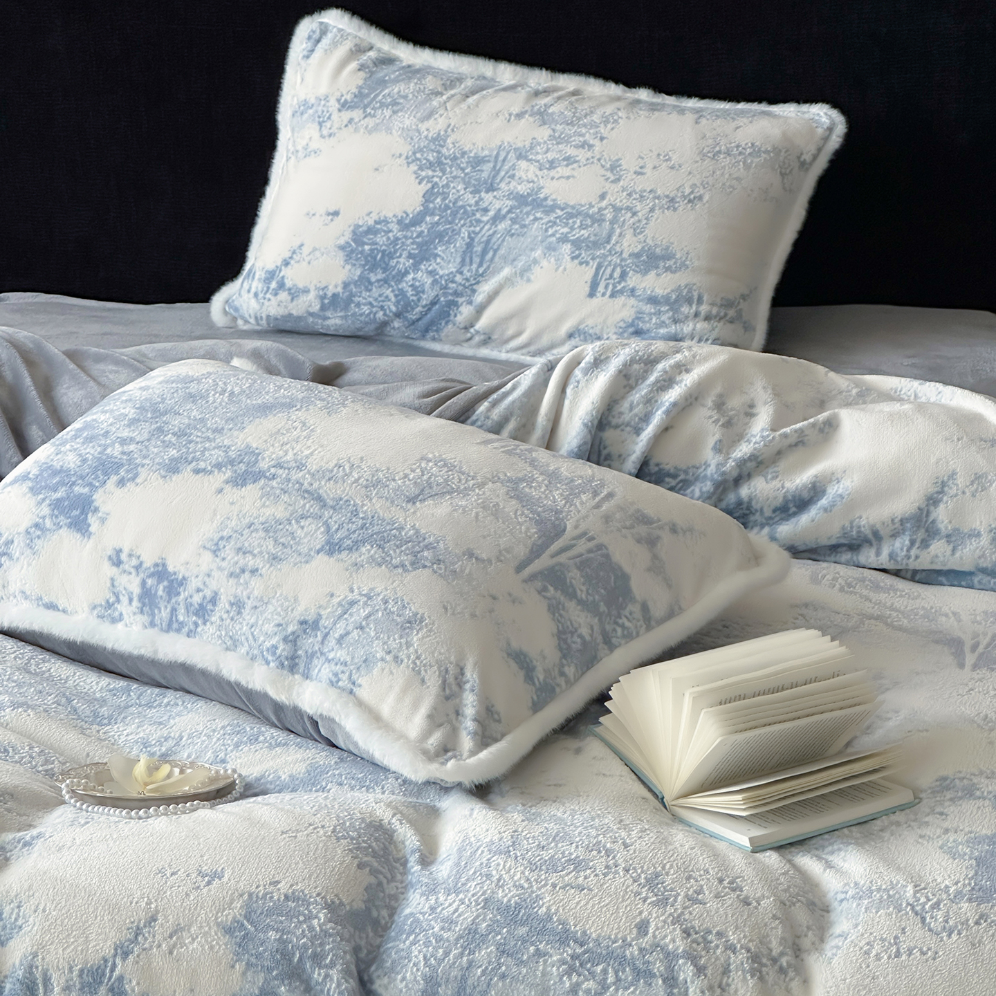 商品名称:梦享生活家居 2025新款轻奢牛奶绒四件套系列 莫奈蓝