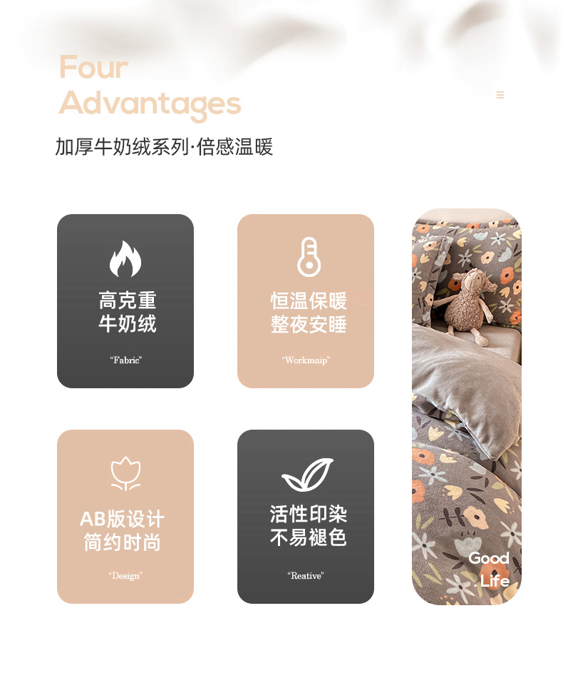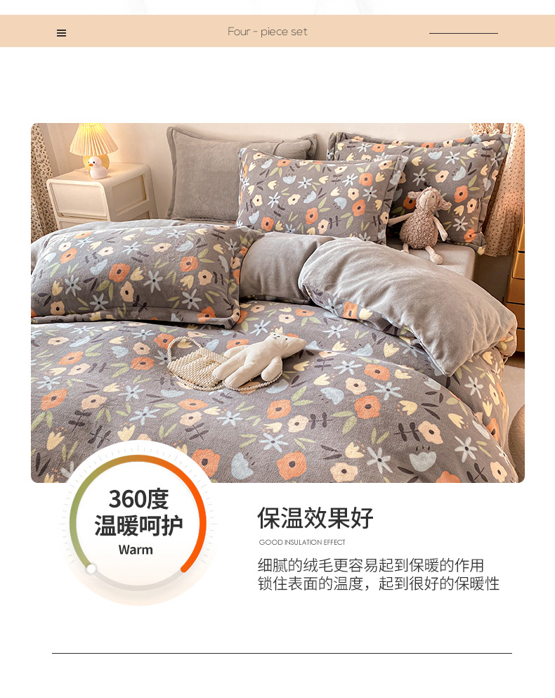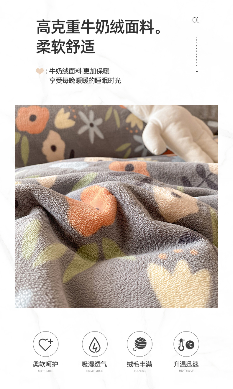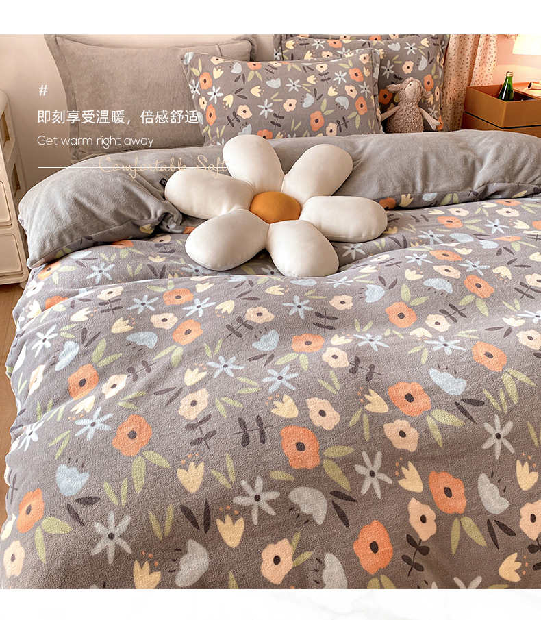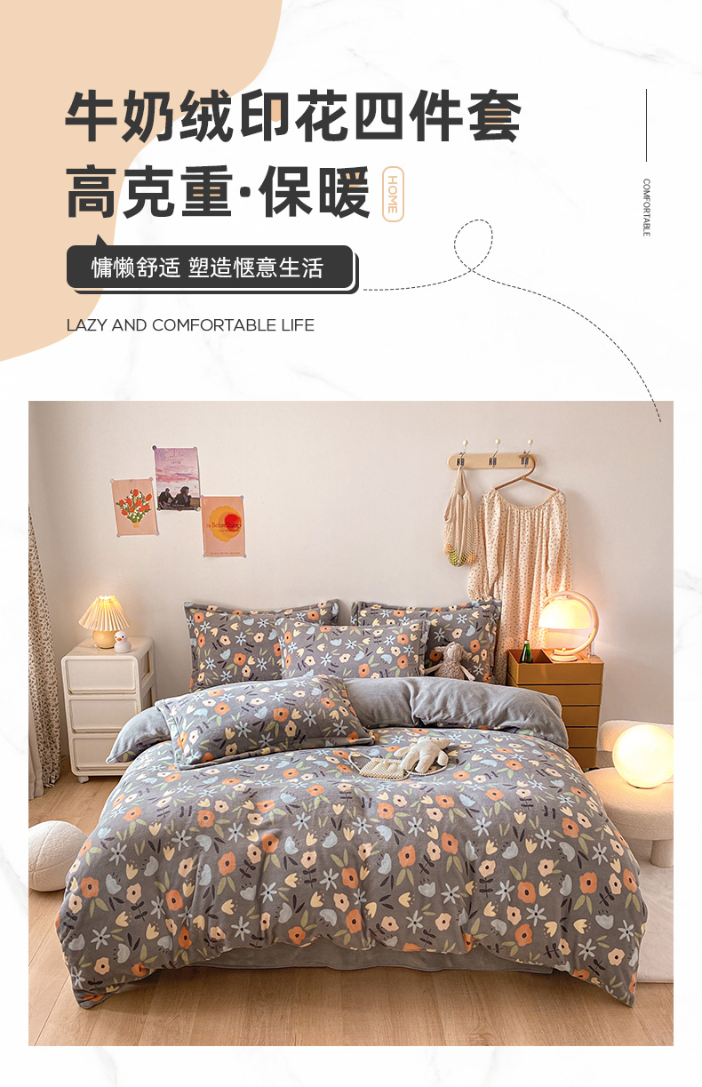 当前位置: 91家纺网 > 商品网购 > 床品套件 > 四件套 > 牛奶绒四件套 > 金盛纺 2025新款高克重牛奶绒印花系列四件套(可定制) 繁花(灰)