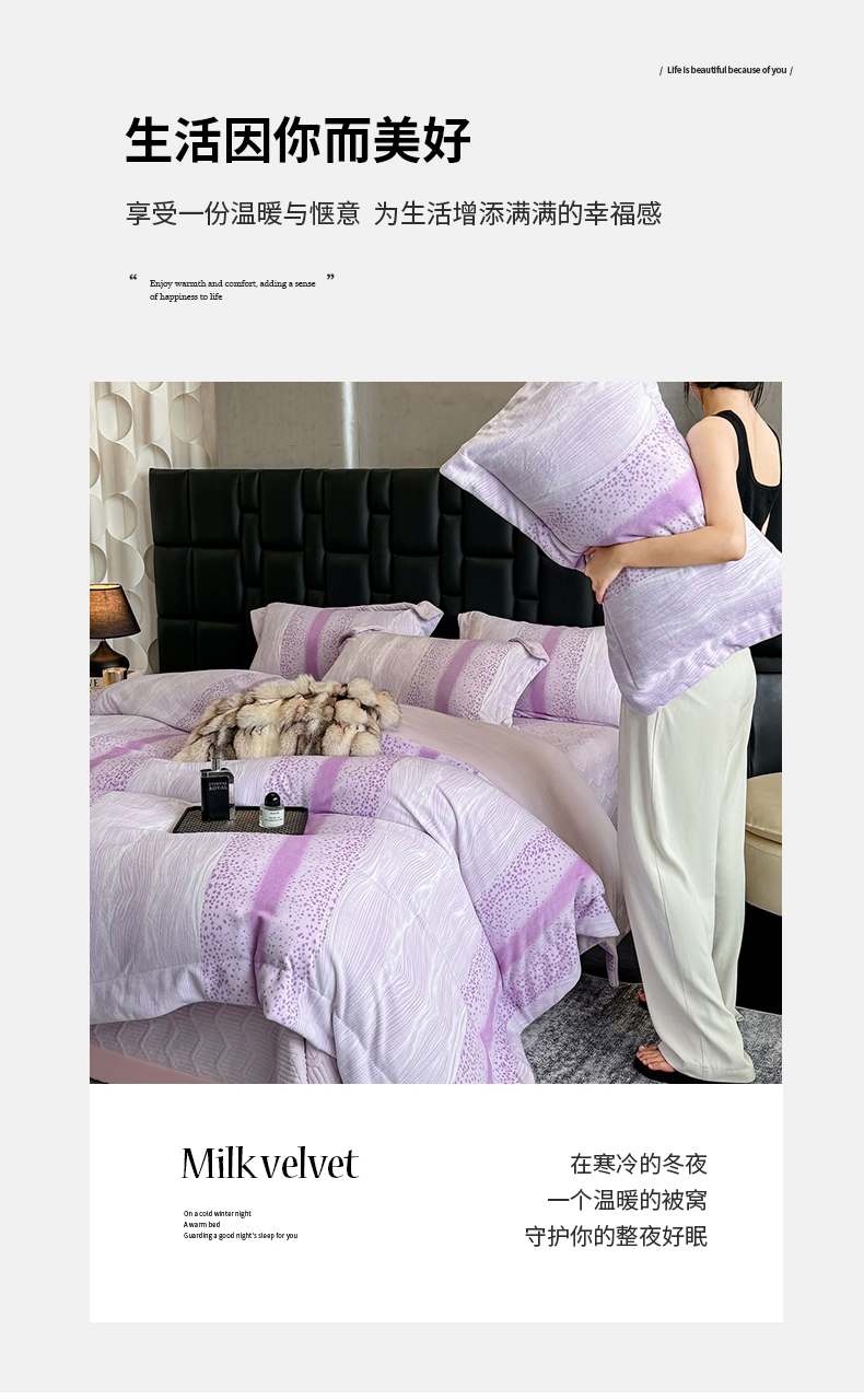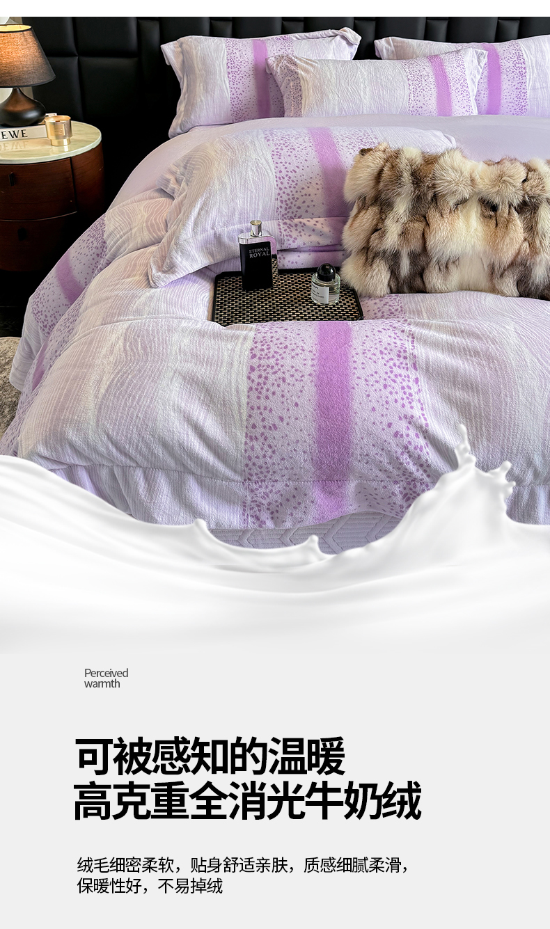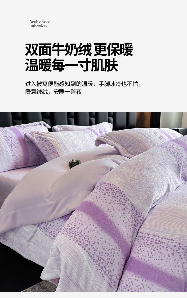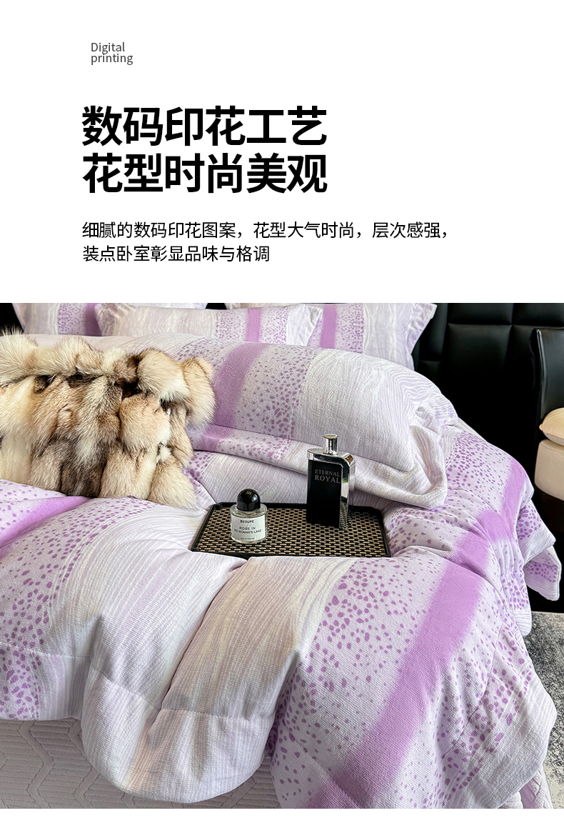 新方向 2025新款240克全消光A类数码印花牛奶绒四件套床盖款-情怀 情怀-魅紫