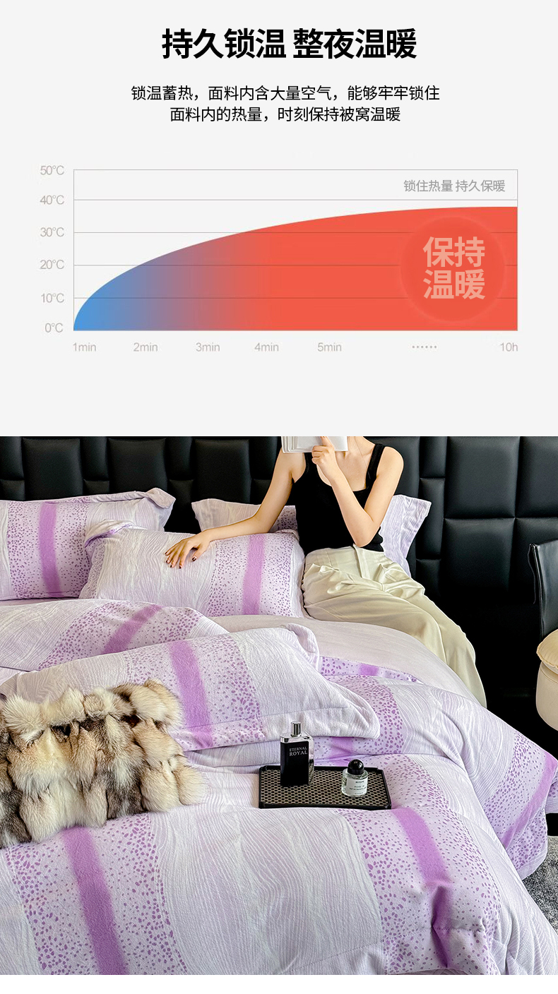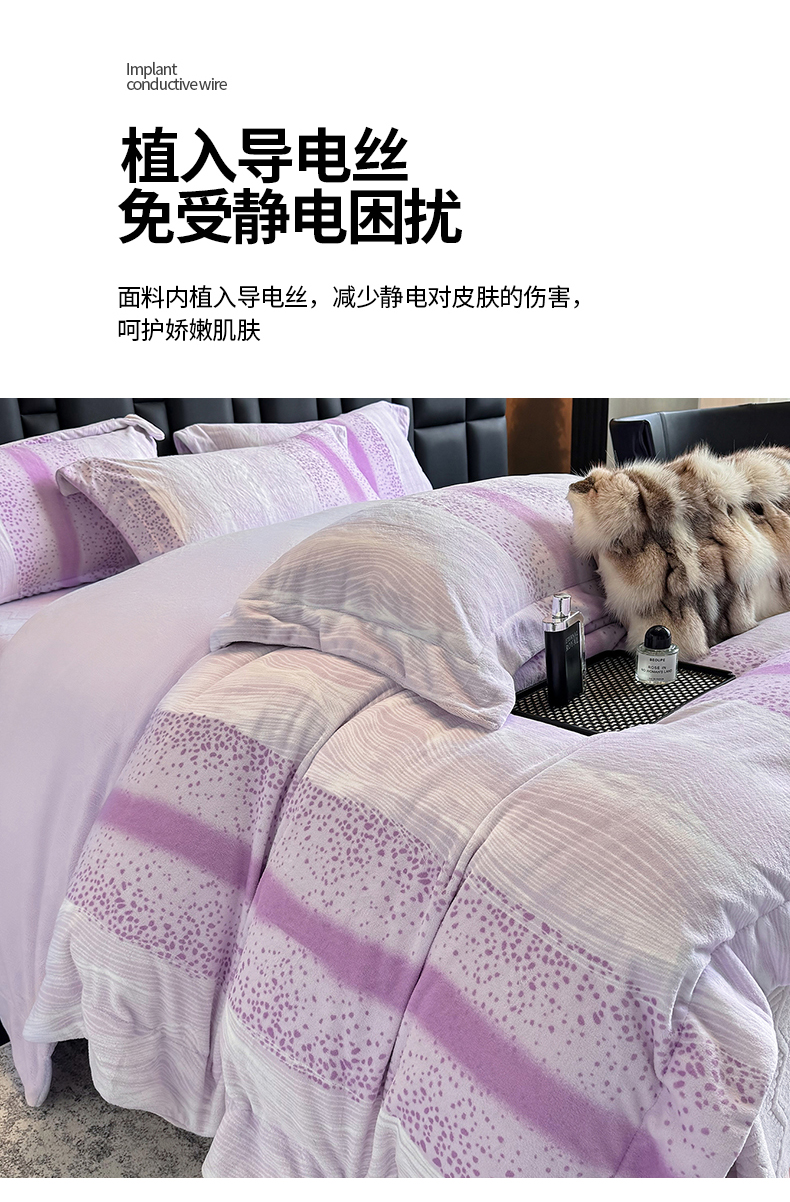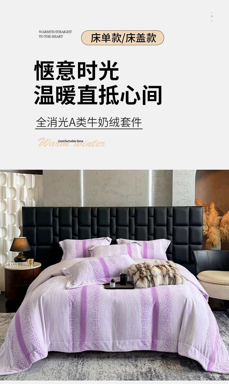 新方向 2025新款240克全消光A类数码印花牛奶绒四件套床盖款-情怀 情怀-魅紫