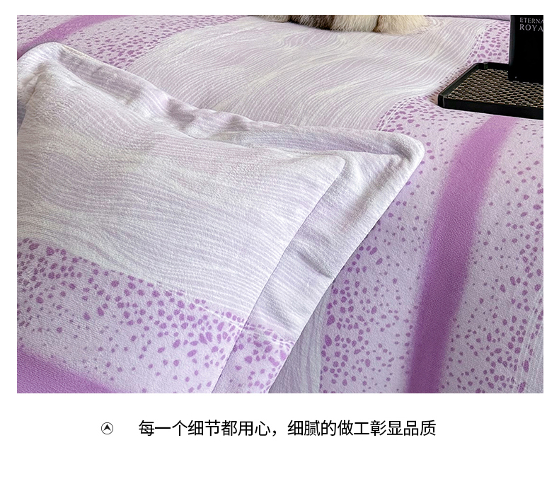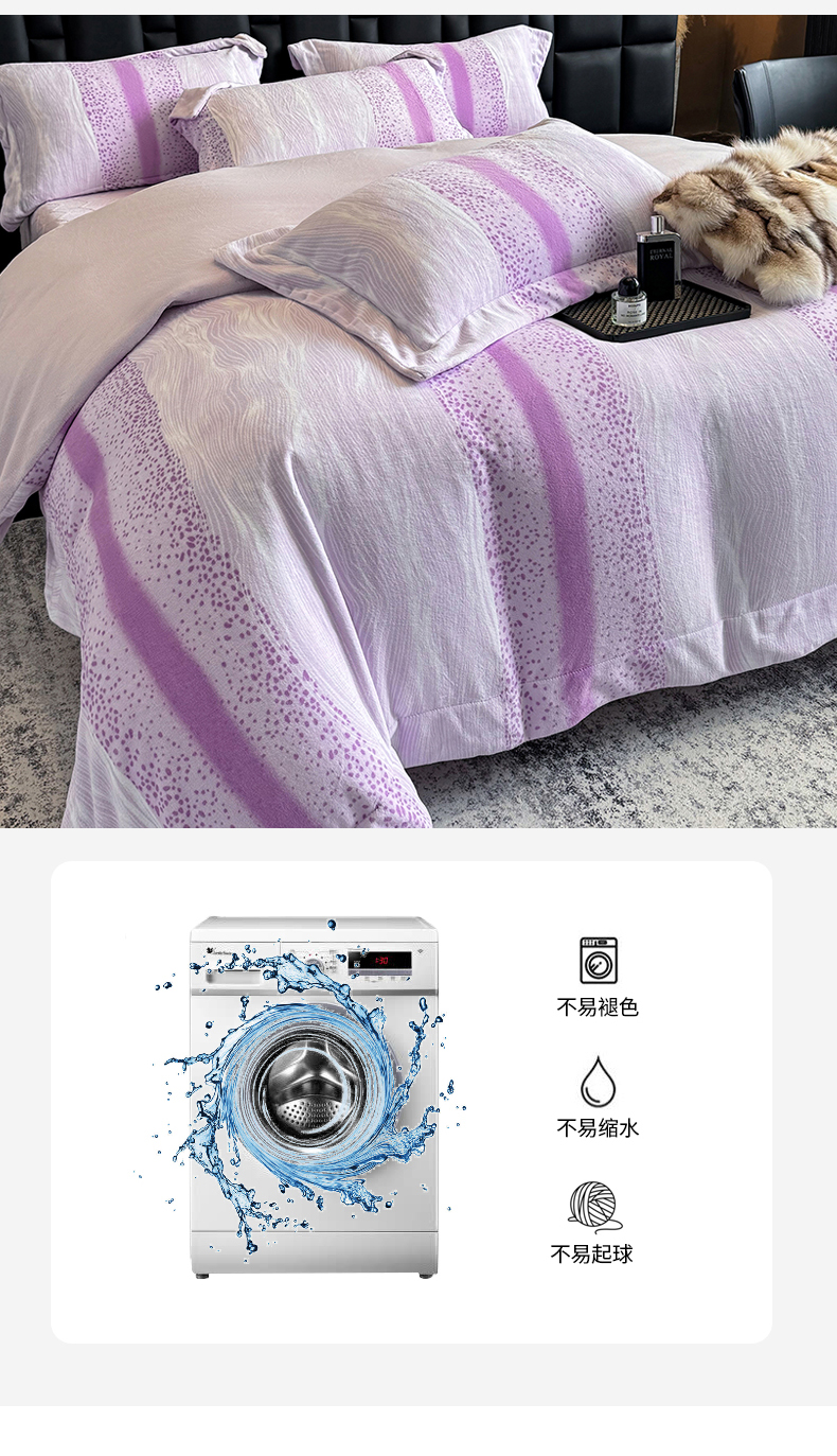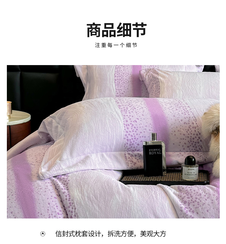 商品名称:新方向 2025新款240克全消光A类数码印花牛奶绒四件套床盖款-情怀 情怀-魅紫
