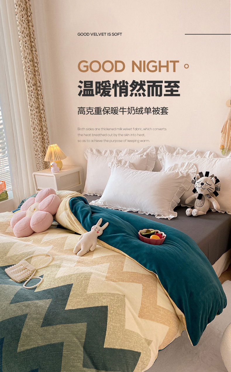 • 91家纺网 家纺一手货源 找家纺 金盛纺 2025新款高克重牛奶绒印花系列单被套(可定制) 梦境(绿)