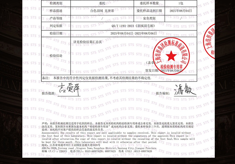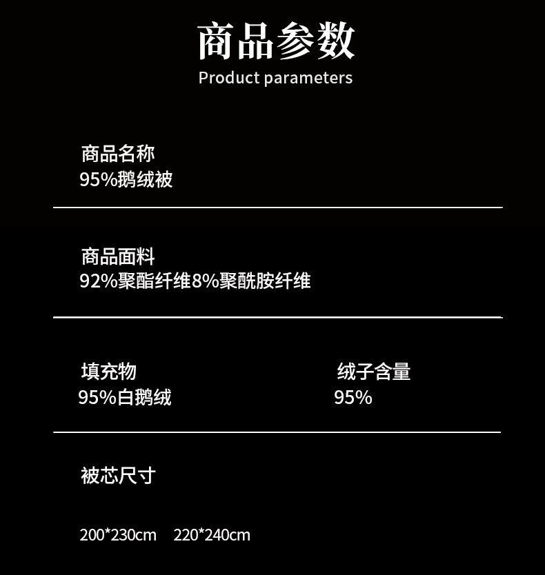 200*230cm春秋被 填充800克95白鹅绒 | ¥1480.00 |