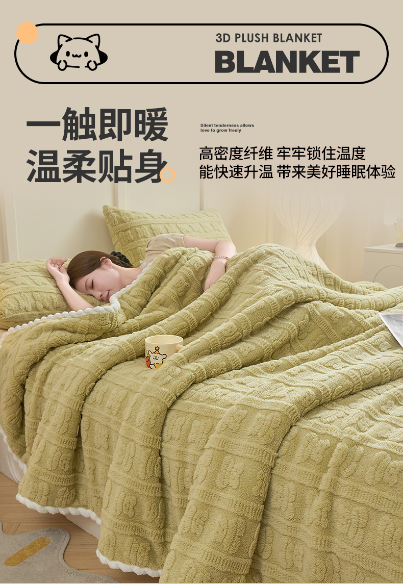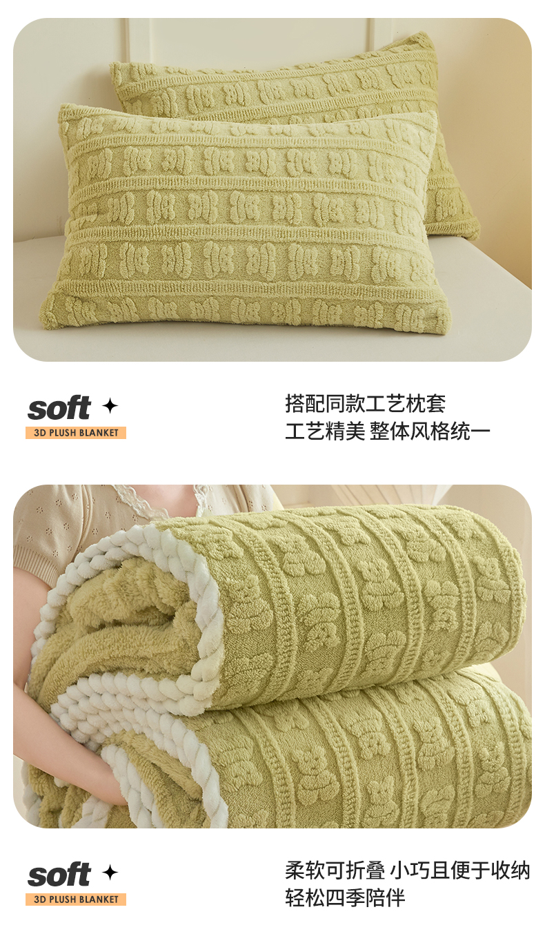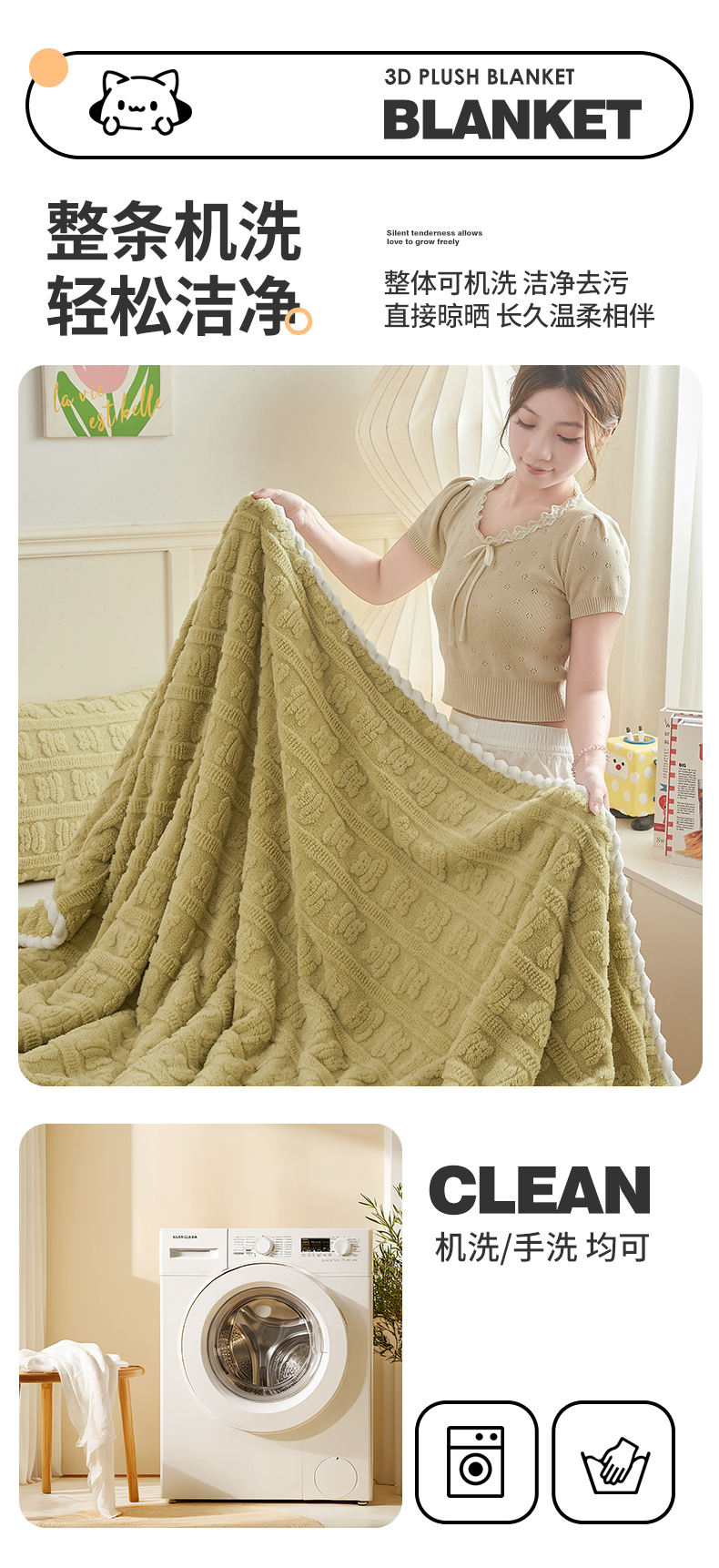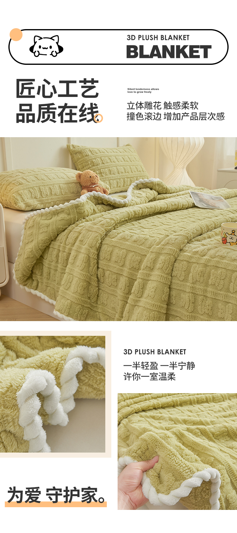 商品名称:世纪绒品 2025新款A类立体牛奶绒雕花绒单层毛毯毯子-多宝熊 多宝熊 果绿