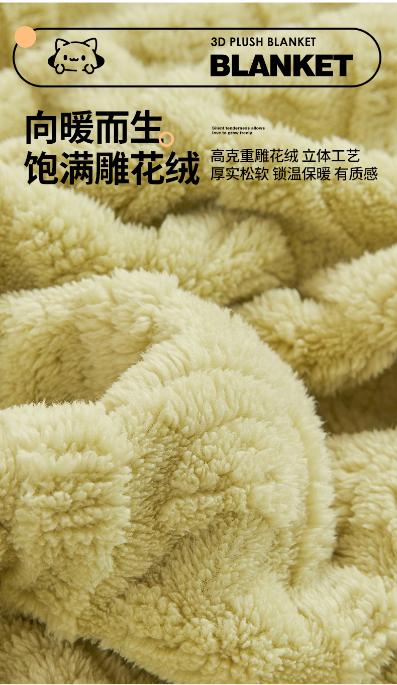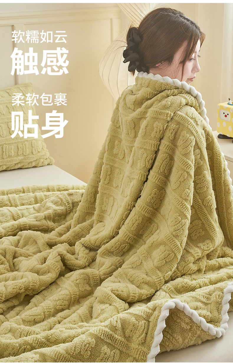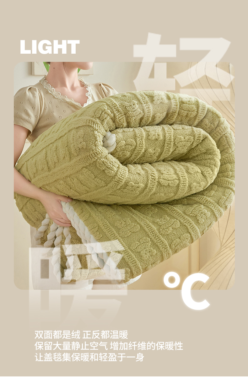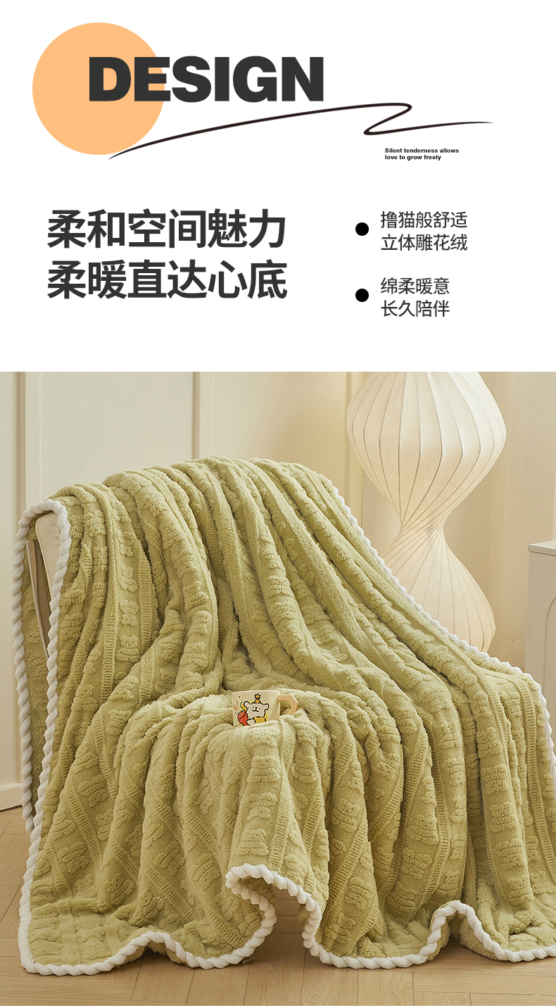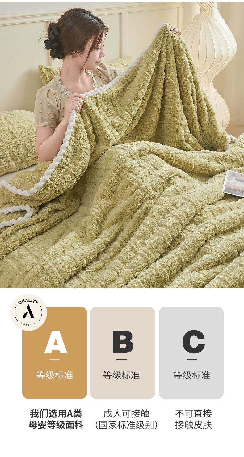 商品名称:世纪绒品 2025新款A类立体牛奶绒雕花绒单层毛毯毯子-多宝熊 多宝熊 果绿
