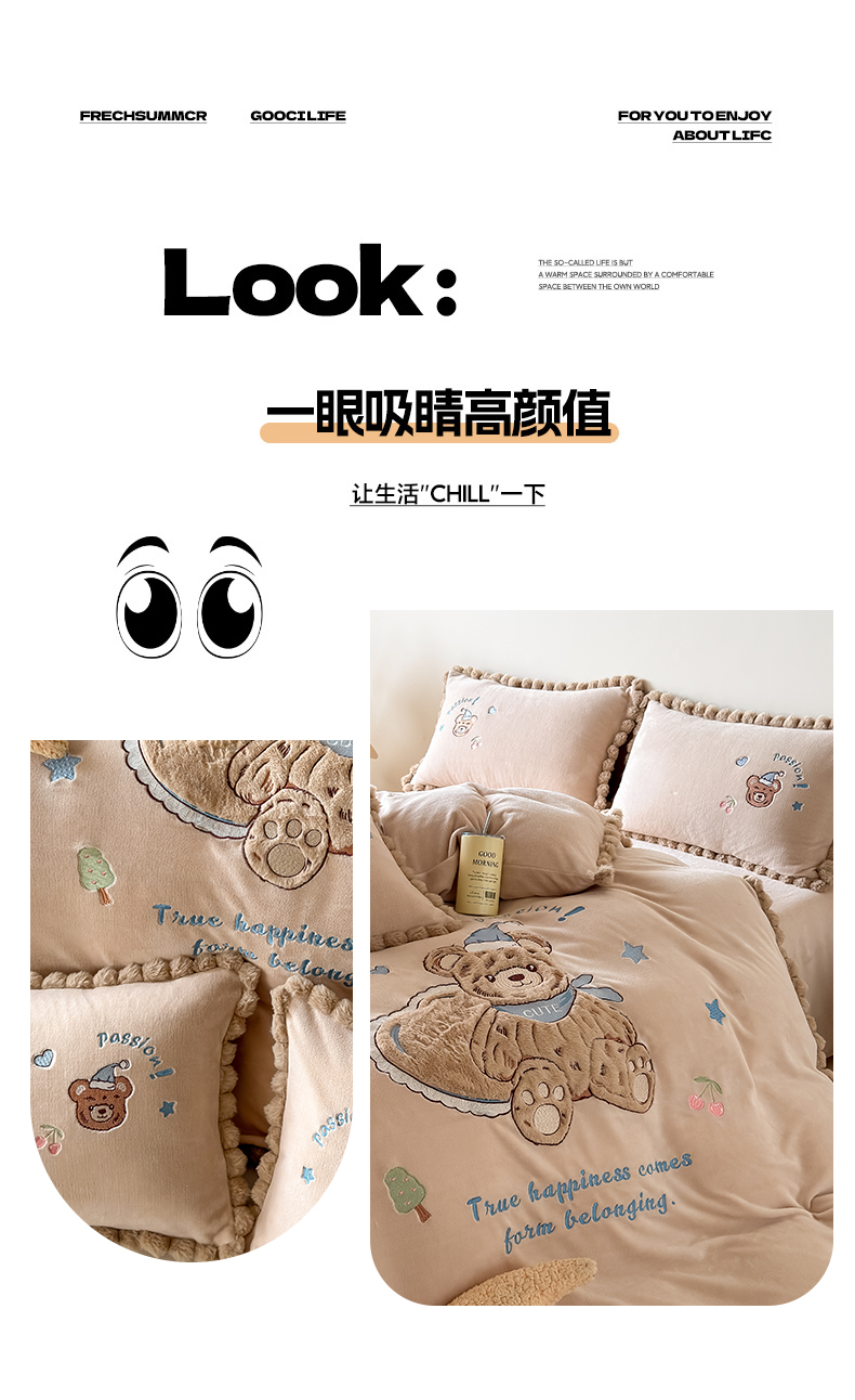 (总)卡罗兰 2025新款200克牛奶绒小清新印花四件套,喜柿,蝴蝶结,可爱汪,爱心熊,字母狗,太阳花,小恐龙,小熊猫,蘑菇,花园兔,可爱熊,亲子熊,知秋,仙草,小樱桃