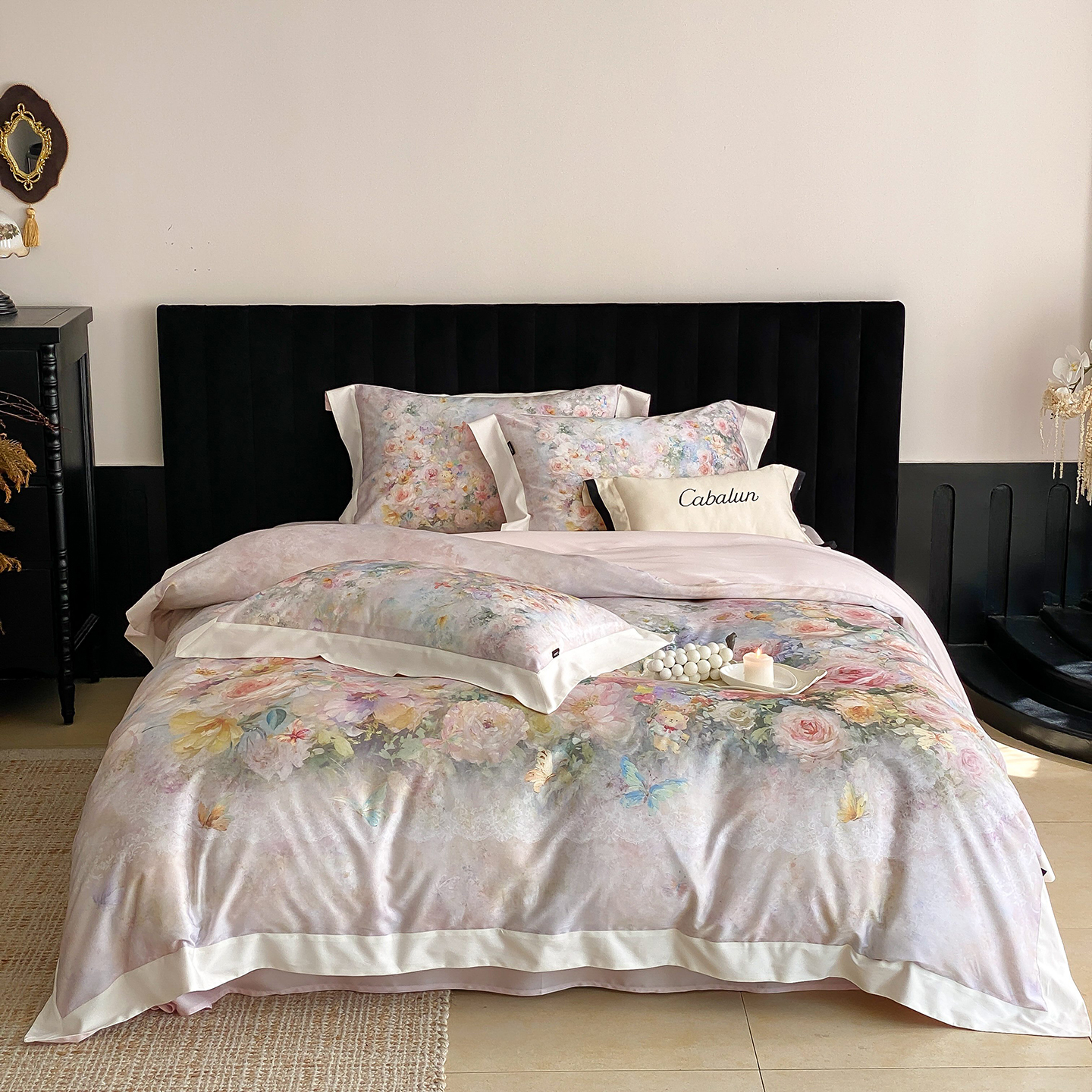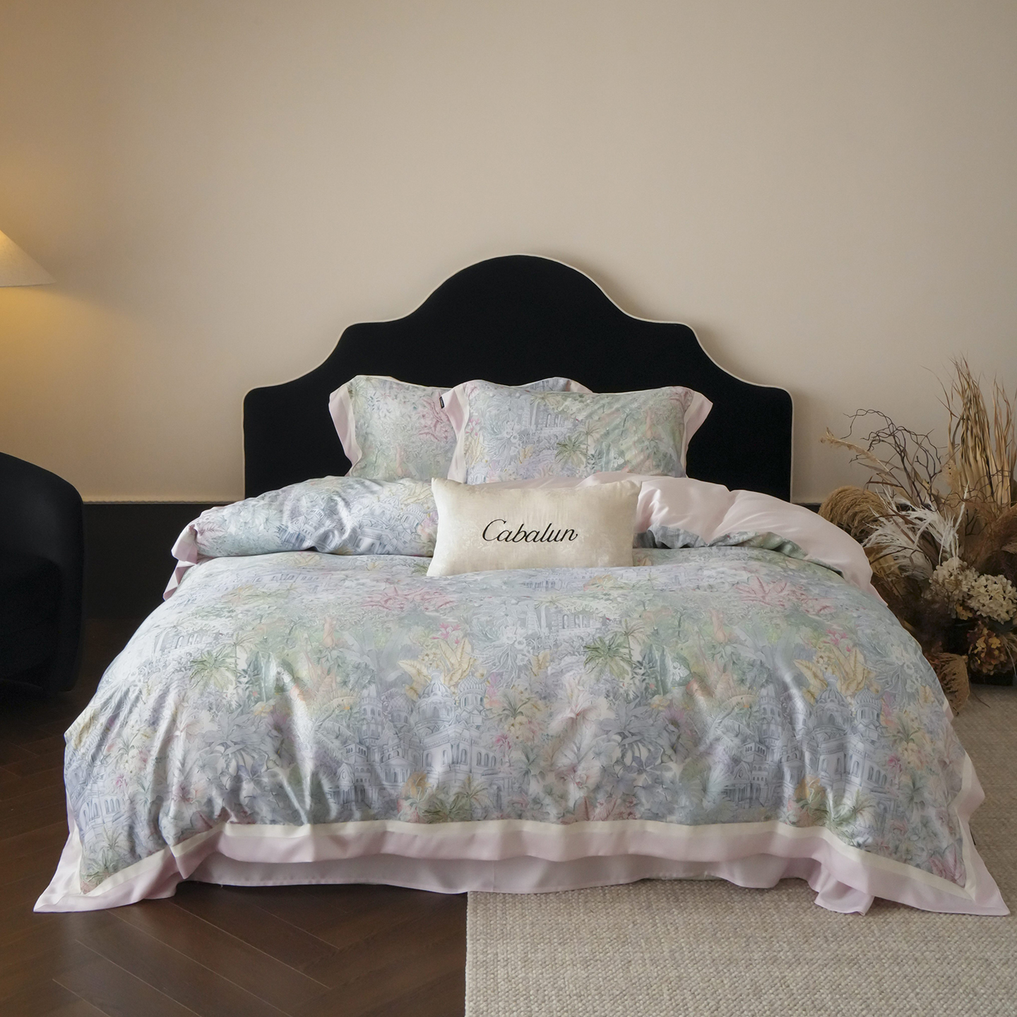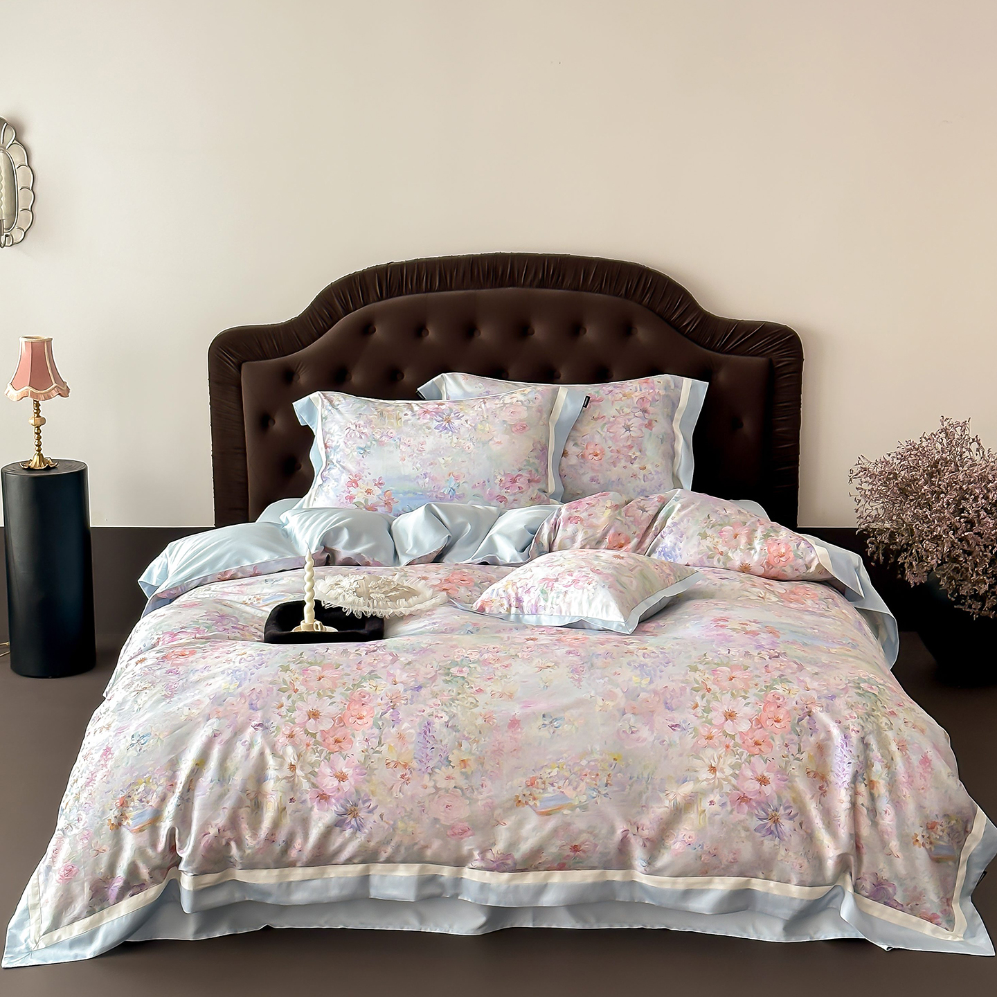 (总)卡巴伦2025新款60兰精天丝夏被四件套,晨露花园粉,晨露花园蓝