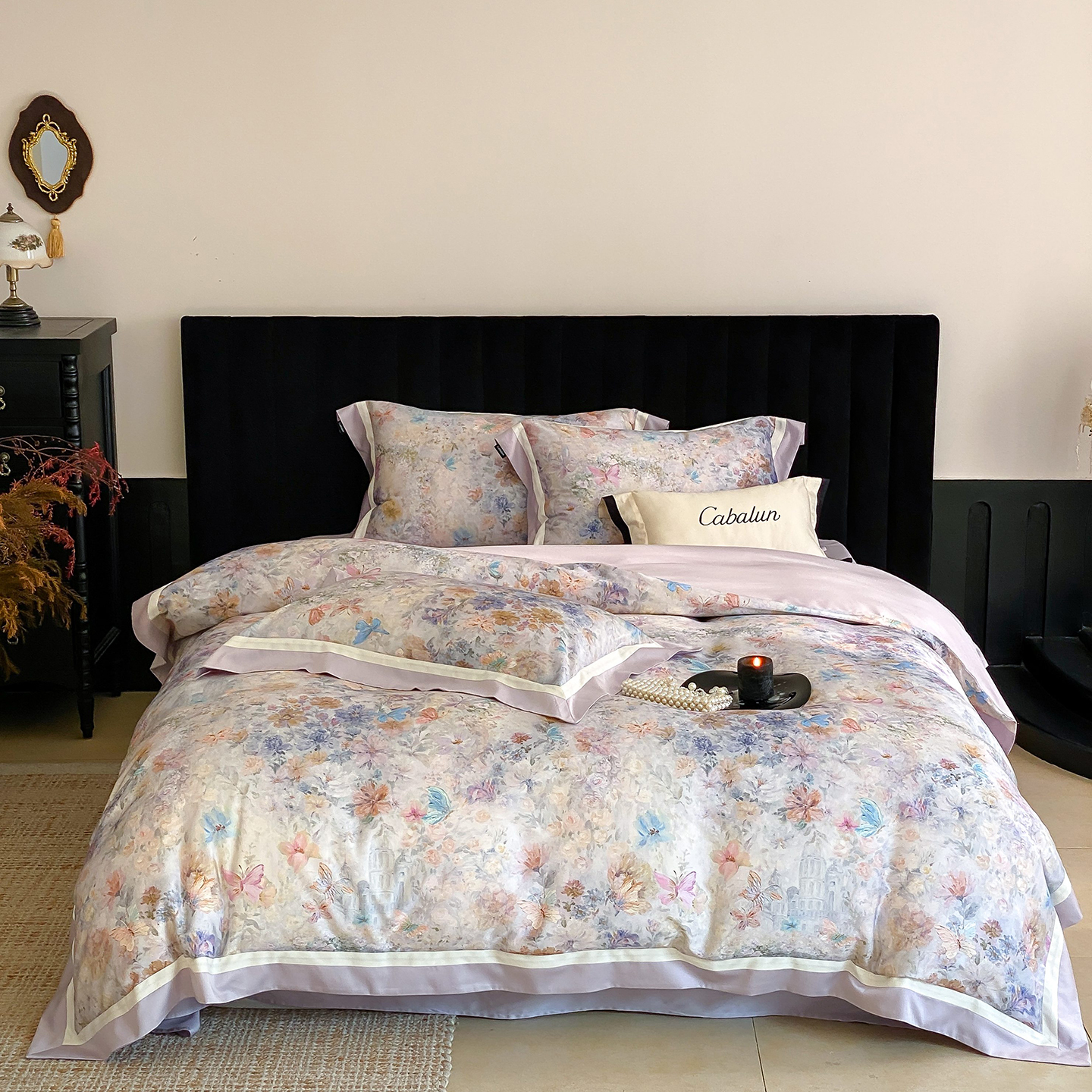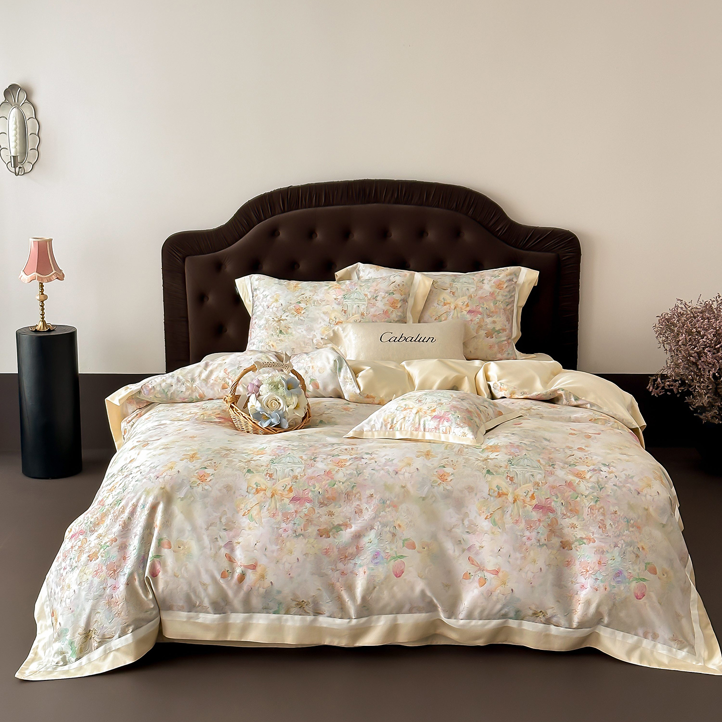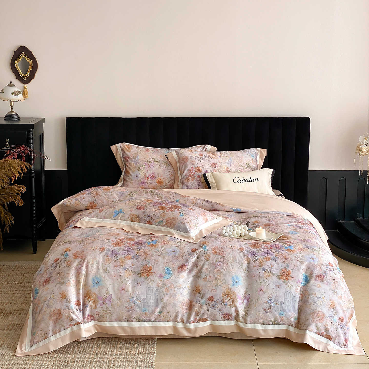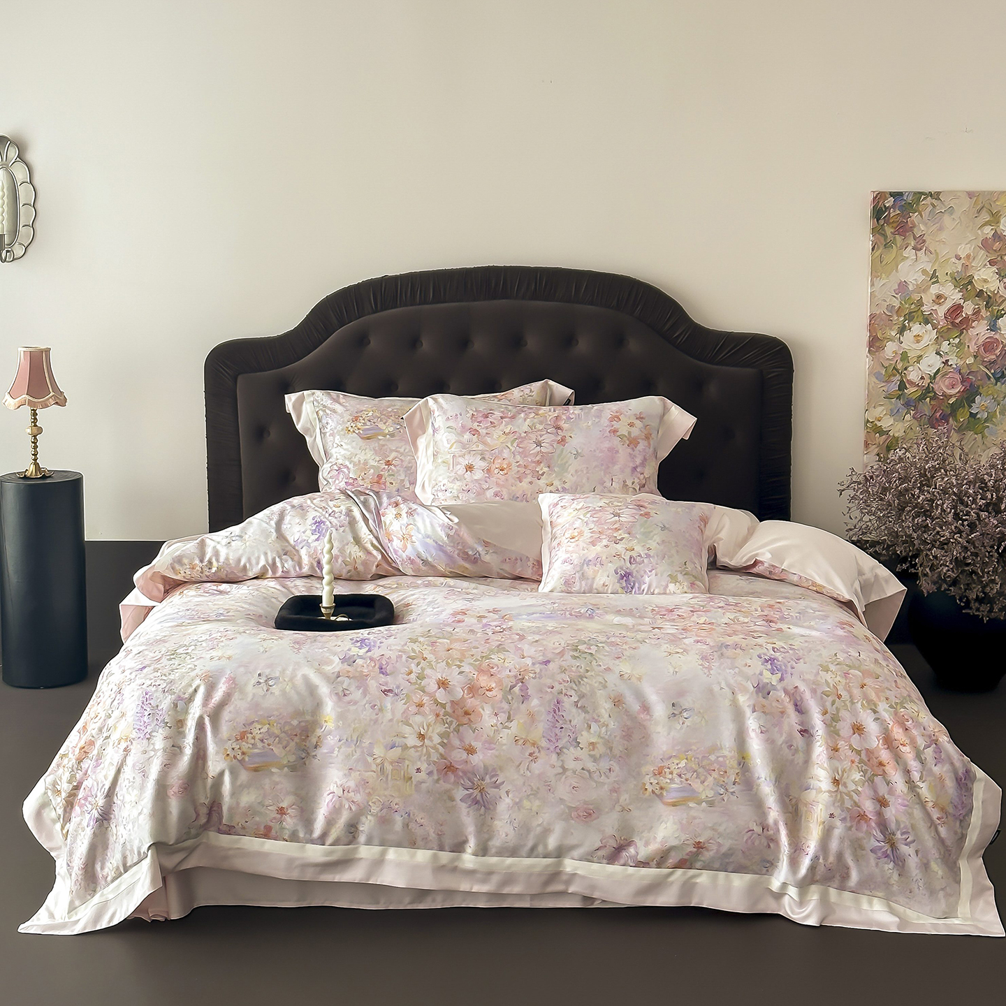 (总)卡巴伦2025新款60兰精天丝夏被四件套,晨露花园粉,晨露花园蓝
