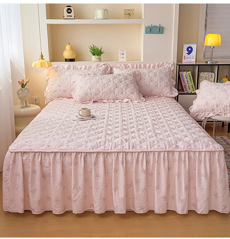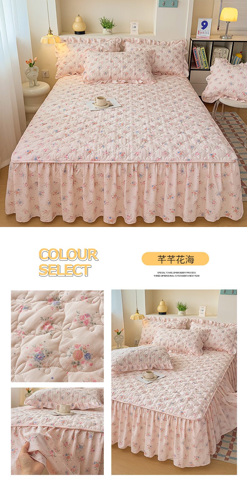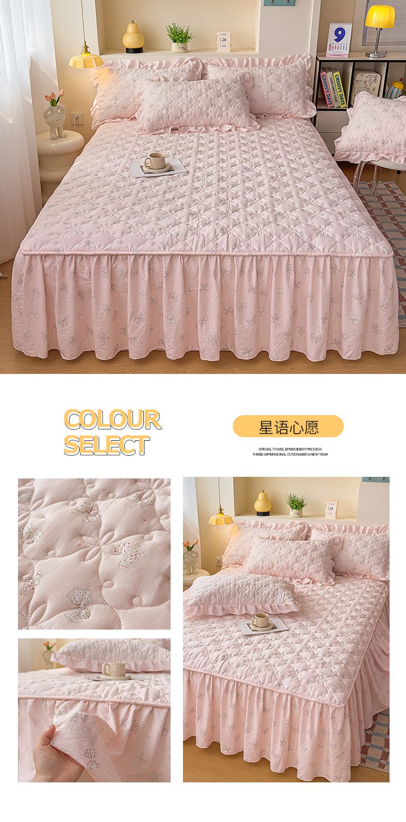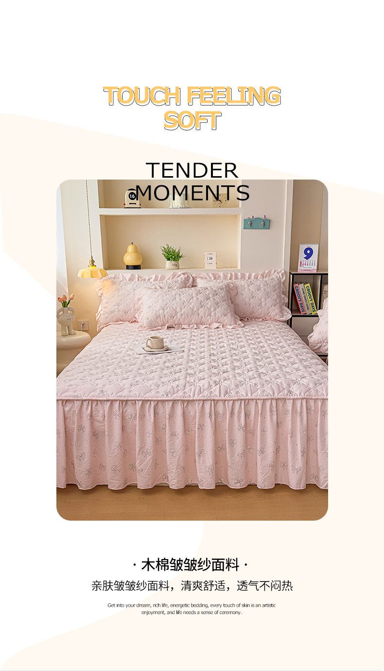 鼎丰家纺 2025新款水洗皱皱纱夹棉床裙 星语心愿