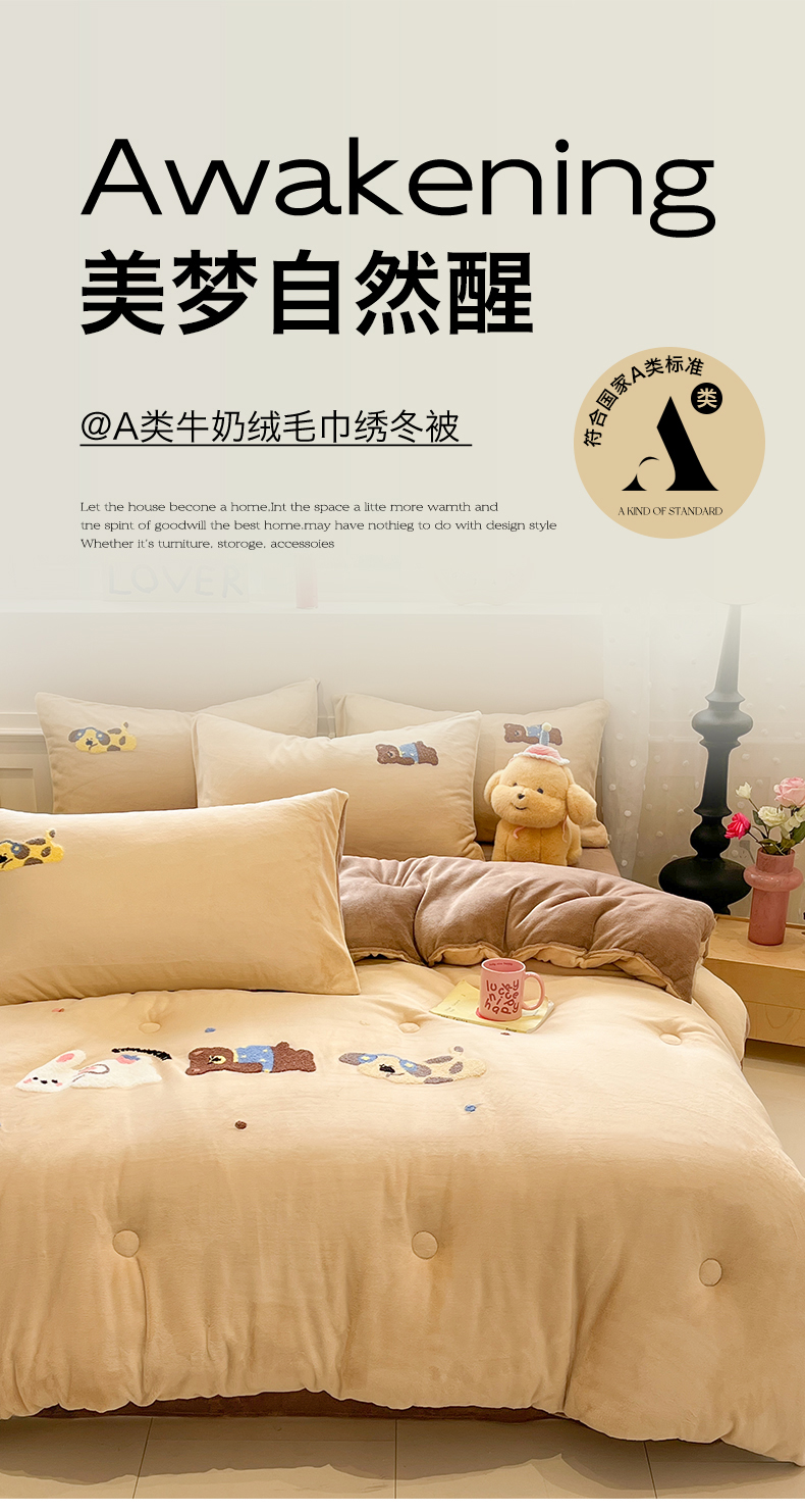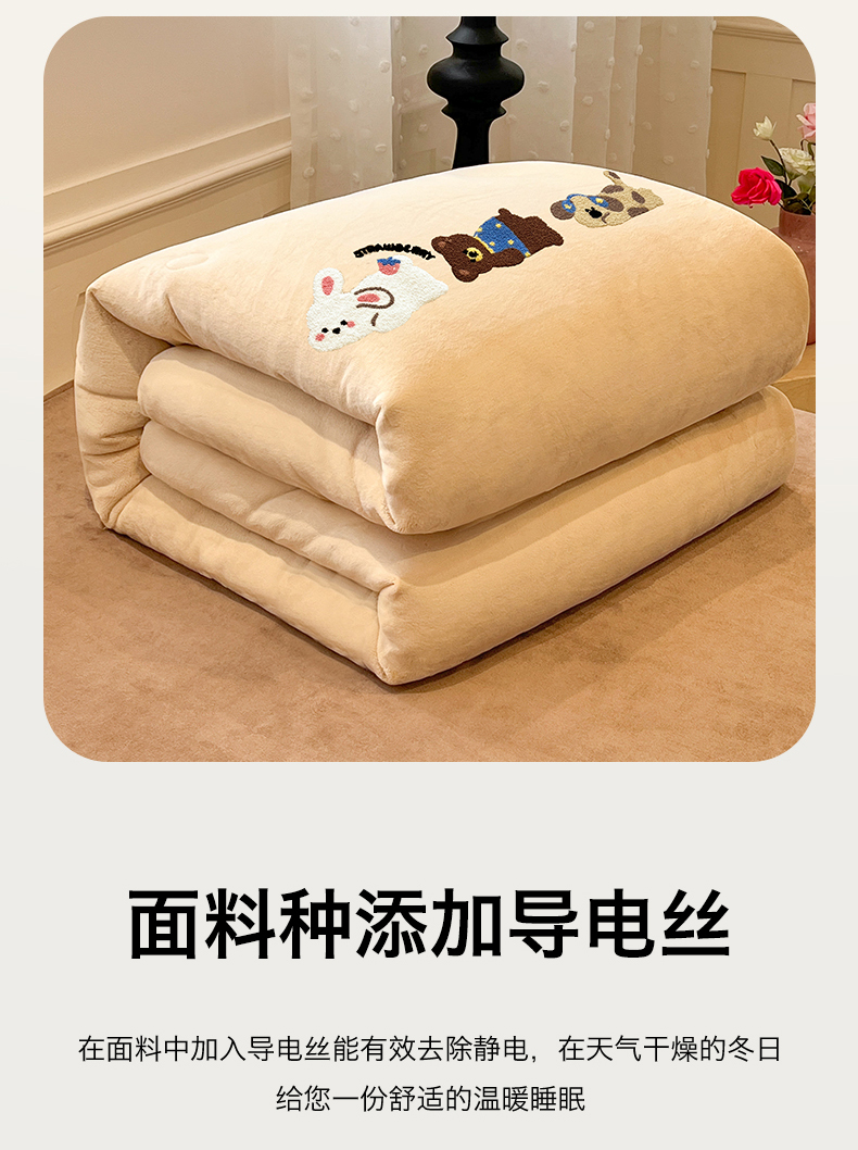 商品名称:优迈 2025新品牛奶绒毛巾绣冬被 被子被芯 冬被-森林派对
