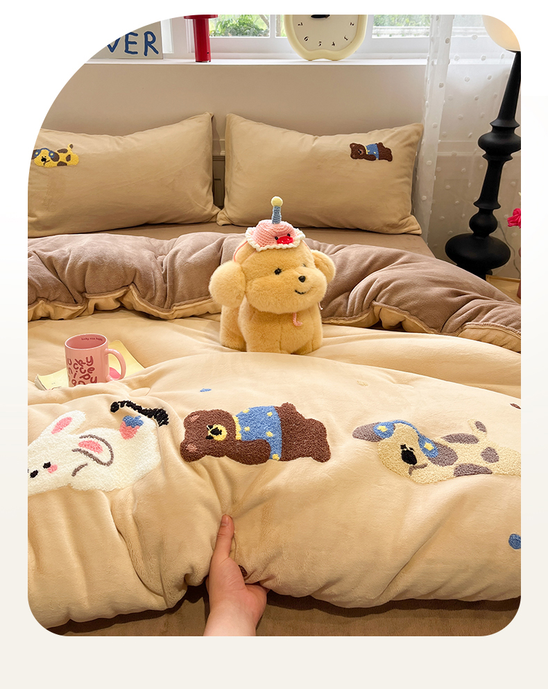 优迈 2025新品牛奶绒毛巾绣冬被 被子被芯 冬被-森林派对